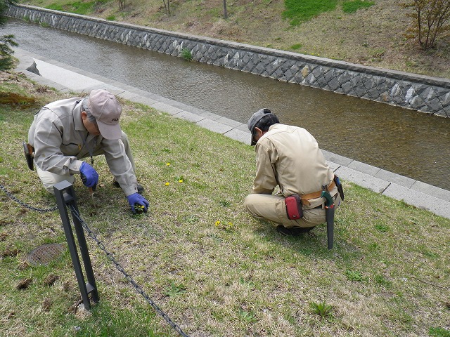 いろいろな花が咲き始める中、植物ボランティアの活動がありました。