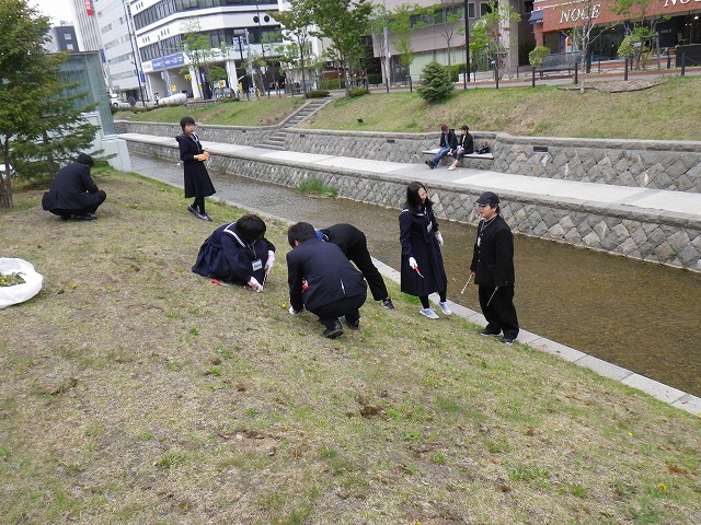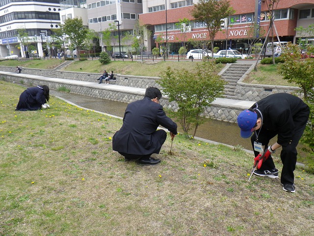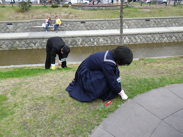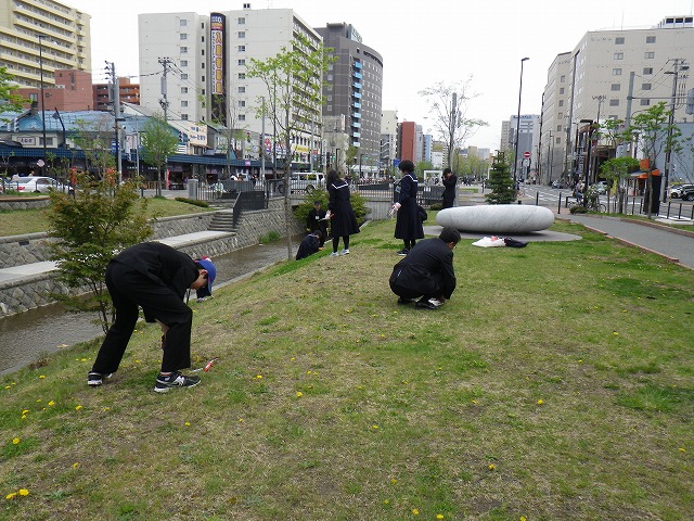 ゴールデンウィーク中の5月3日の日曜日、上士別中学校の3年生6名と校長先生、担任の先生2名が、修学旅行で創成川公園を訪れてくれました。 公園のこと、公園で活動するボランティアのことをお話しして、札幌で過ごす貴重な時間に、タンポポ取りのボランティア活動をしてくれました。 みどりを大切にする活動を、みんな楽しみながら行っていました。