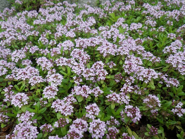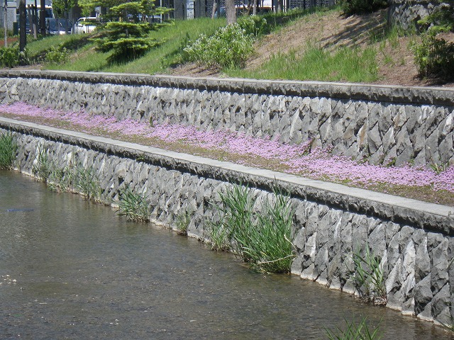 創成川公園の川から一段上がったところに、今、ピンクの小さなお花が咲いています。