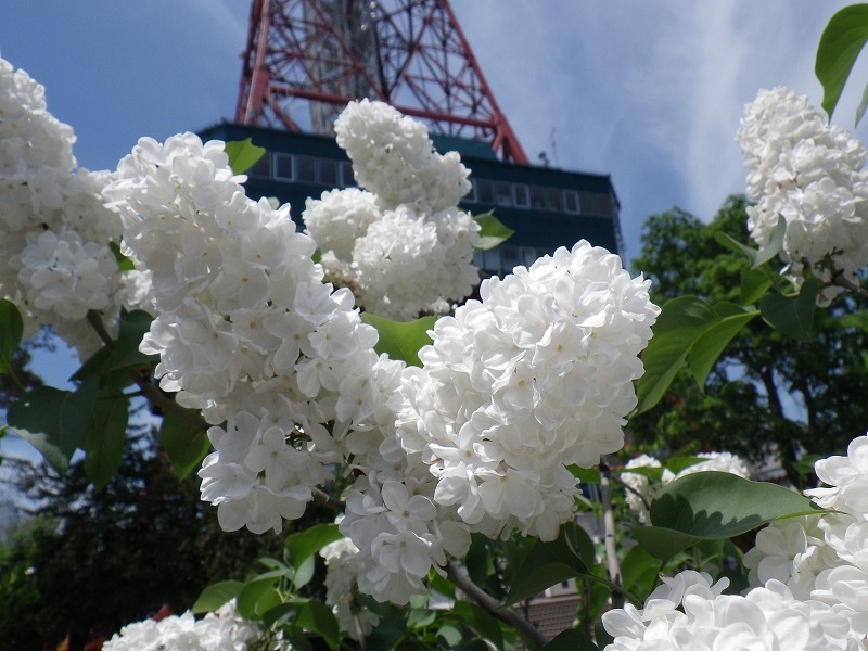 今、園内は、ライラックと一緒に「ドイツスズラン」がきれいに咲いています。 まんなか広場のスズラン このスズランの横ではライラックの「フローラ1953」が満開。 テレビ塔を見上げています。 フローラ1953 「ライラックの投稿写真」も、たくさん寄せられています。 こちらから見ることが出来ます。是非、ご覧下さい。