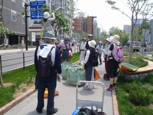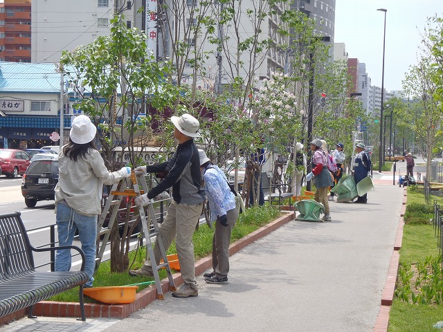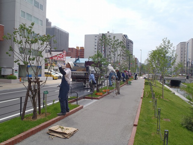 創成川公園植物ボランティアの第2回目の活動が6月21日(火)、晴天の中で行われました。