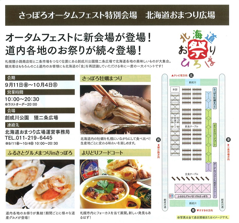 創成川公園狸二条広場でも「さっぽろオータムフェスト」の特別会場として『北海道おまつり広場』が開催中です。