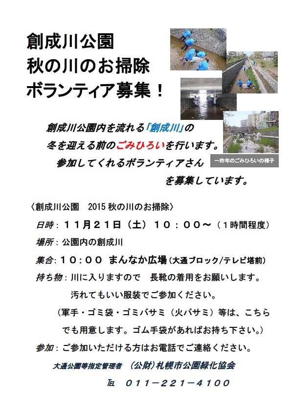 創成川公園で活動してくれるボランティアさんを募集しています! 企業・団体・学生さんのご参加も歓迎です!