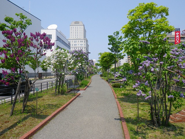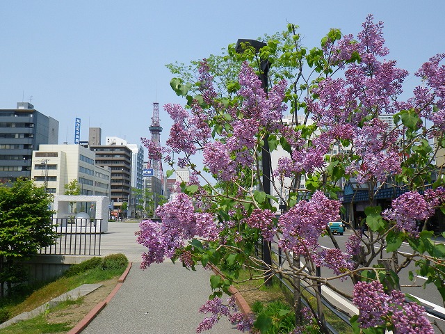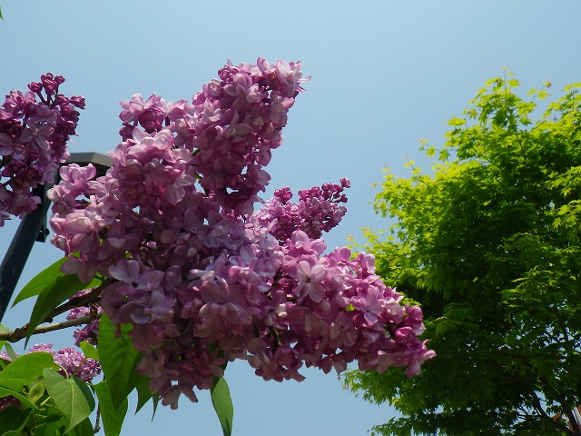 夏のような暑さとなり、川の水がきもちいい今日の園内では、ライラックが満開です。