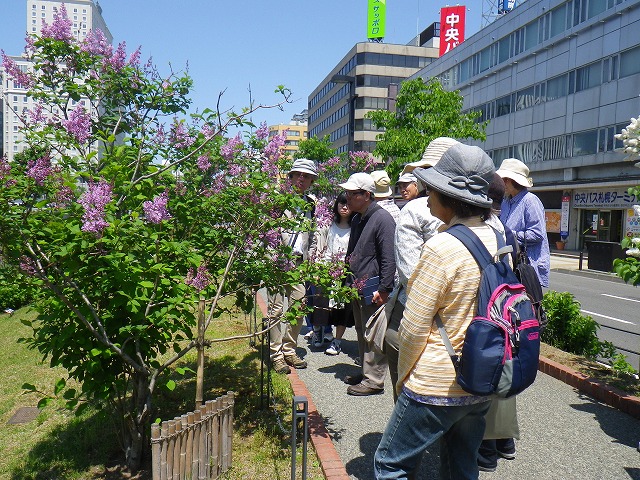 お天気に恵まれた5月28日29日に創成川公園の狸二条広場で、ライラックまつりとライラックガイドツアーを開催しました。 28日土曜日に開催した「ライラックガイドツアー」には、毎回定員いっぱいの15名の参加があり、2時間のガイドツアーを楽しみました。 29日には、アートマーケットも同時開催。 ご参加いただいた皆様、ありがとうございました。