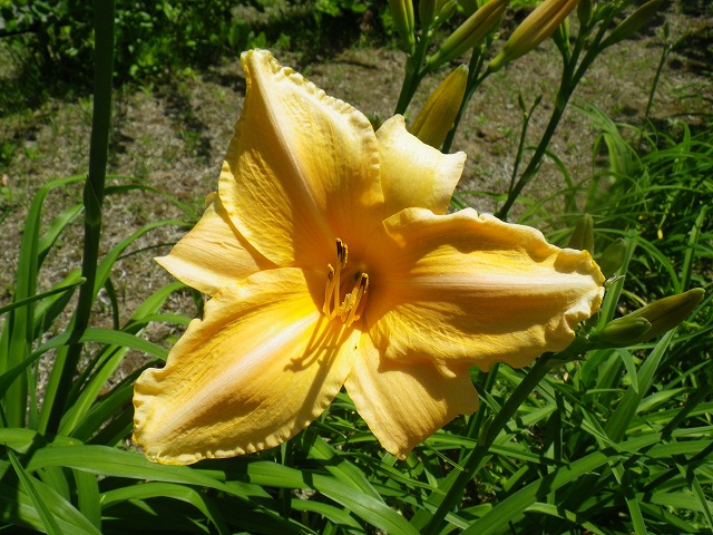 創成川公園には、約60カ所のヘメロカリスの花壇があり、20種類のヘメロカリスが次々に開花しています。 ヘメロカリスは「デイ リリー」とよばれるように、ユリ科の一日花です。 開いた花は、1日で盛りを過ぎてしまいますが、次々に違う花が開花するので、長く楽しめる花壇になっています。 ●トゥーシーローズ ●紅雀 ●リトルビックマン ●エドナスポールディング ●ダブルキューティー ●レッドアイ ●夕張岳 ●ステラデオロ ステラデオロは一番早くから咲き始めています。 満開を迎えています。