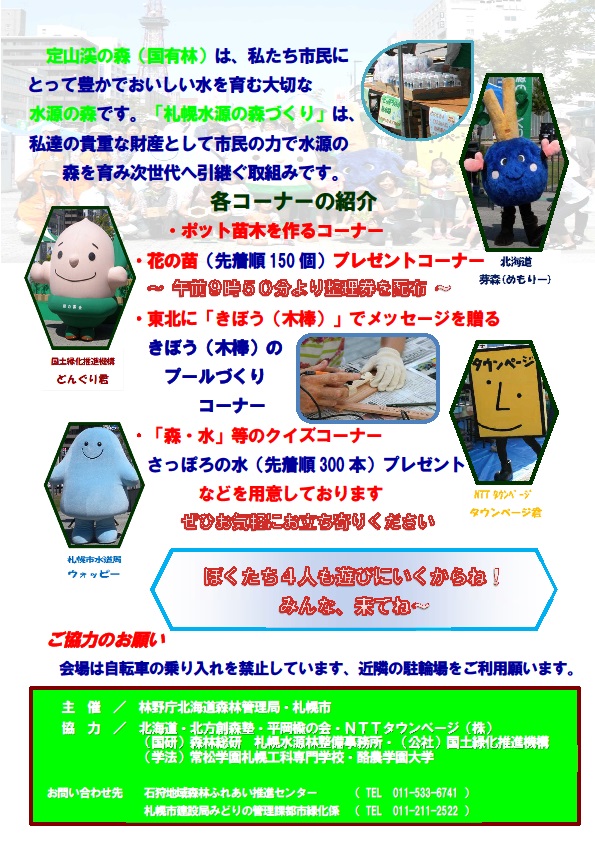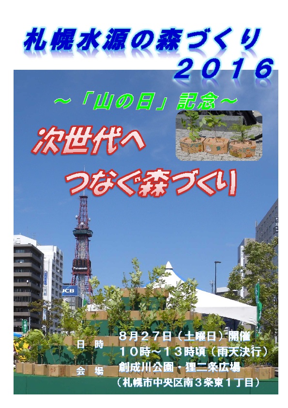 毎年、狸二条広場で行われている「札幌水源の森づくり」が、8月27日土曜日に開催されます。