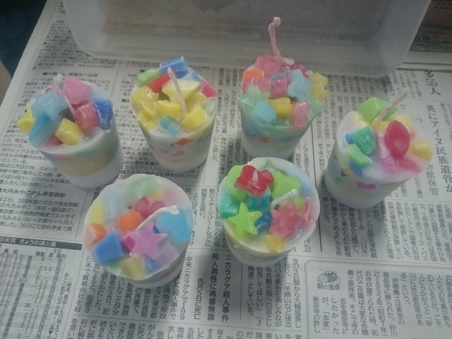 11月の中旬から、お助け隊は、1月のスノーキャンドルイベントに向けて、ロウソク作りの真っ最中です。 いろいろな作り方を試行錯誤しながら、ことしも、色とりどりのロウソクを作っています。 もととなるロウソクは、やわらぎ斎場さんからご寄付いただきました。 そして、子ども達を対象とした「カラフルロウソク作り」の準備も進めています。 12月最後の活動となる次回12/21は、ワックスボール作りを行う予定です。 1月21日土曜日、お助け隊のみんなが作ったいろいろなロウソクが点灯されるのを、お楽しみに!