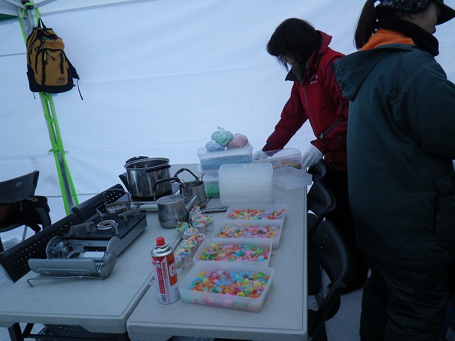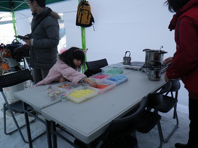 会場では、お助け隊のメンバーによる「カラフルろうそく作り」も開催。