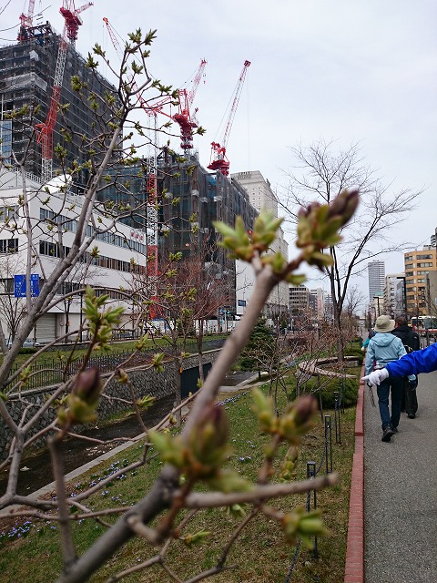 園内のエゾヤマザクラが3,4輪、小さな花を開かせています。 (北1条西側 4/25現在) チシマザクラは、つぼみが膨らんできています。 早咲きのライラックもつぼみが色づいてきています。 チオノドクサは満開です。 キタコブシも花開いて、これからいろいろな花が咲いてくるのが楽しみです。