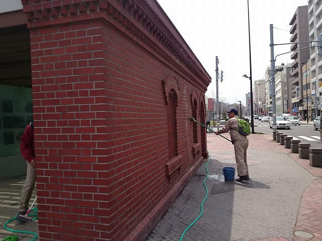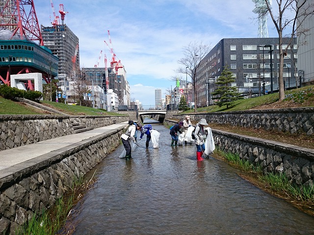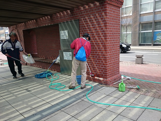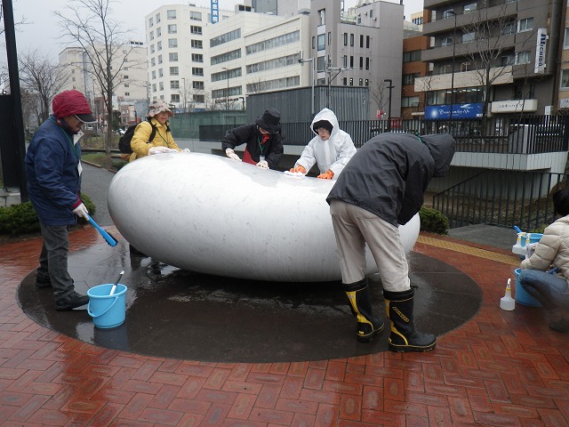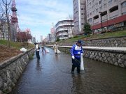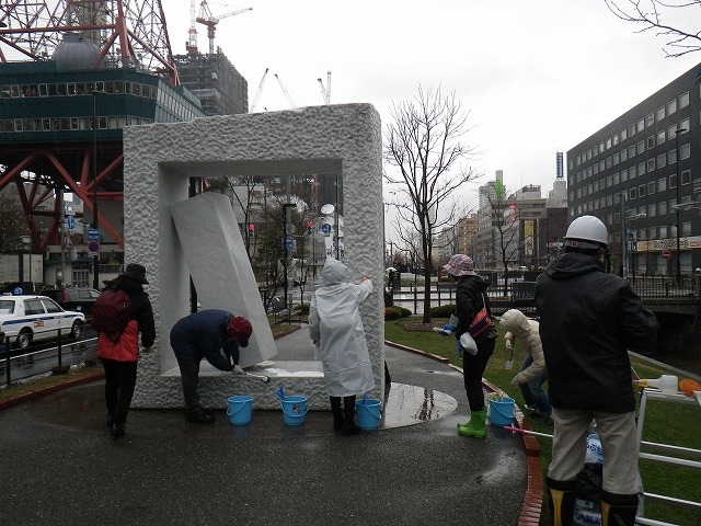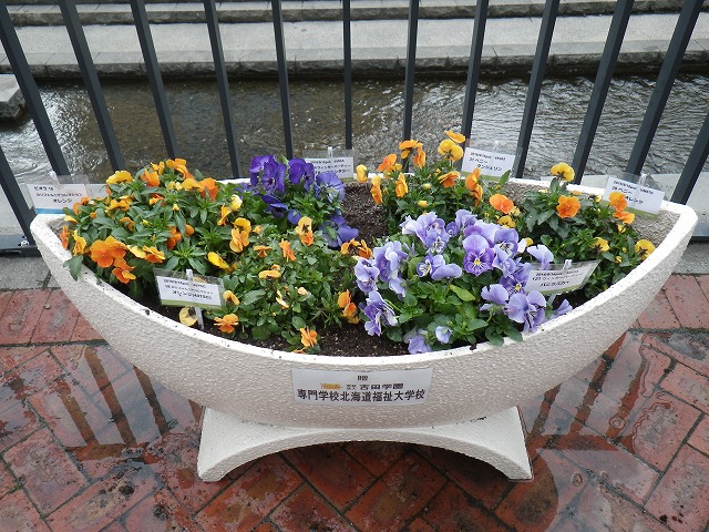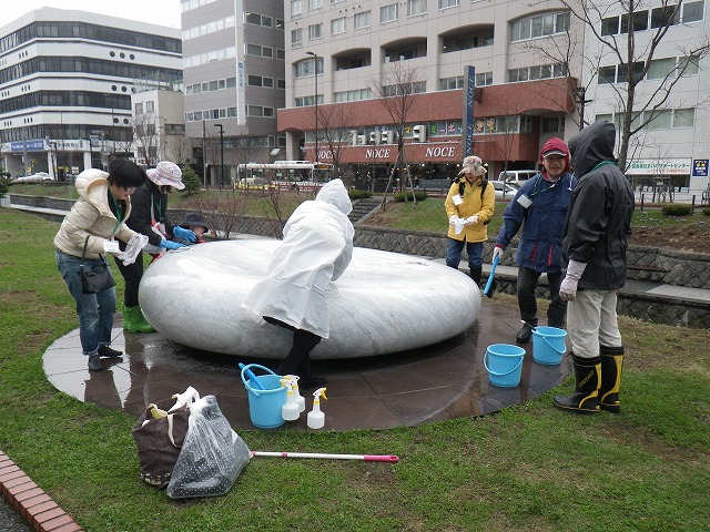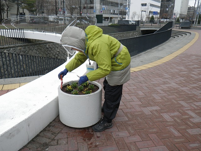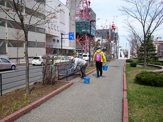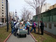 創成川公園のボランティアさんたちの外作業も、最初は雨にたたられたこともありましたが、順調に始動しています。 ・・・ お助け隊(4/26) 川のゴミ拾い、南1条休憩施設の清掃、ベンチの清掃、と大忙しの1日でした。 ・・・ 植物ボランティア(4/25) 園内の樹木に樹名板をつけました。 少しずつ、木の名前も覚えていっていますよ。 ・・・ 花くらぶ(4/20) 大通まんなか広場のコンテナと、北2条ブロックの花壇、狸二条広場南側のコンテナに、ビオラやパンジーを植え込みました。 まんなか広場のビオラは、小さなウサギの耳がついたような形のビオラです。 ぜひ、見に来て下さい。 ・・・ 創成川ポポロ 安田侃彫刻清掃(4/22) 雨の中、シートが外されて春を迎えた彫刻の清掃に励みました。 ・・・ みなさま、お疲れさまでした。 また1年間、よろしくお願い致します。