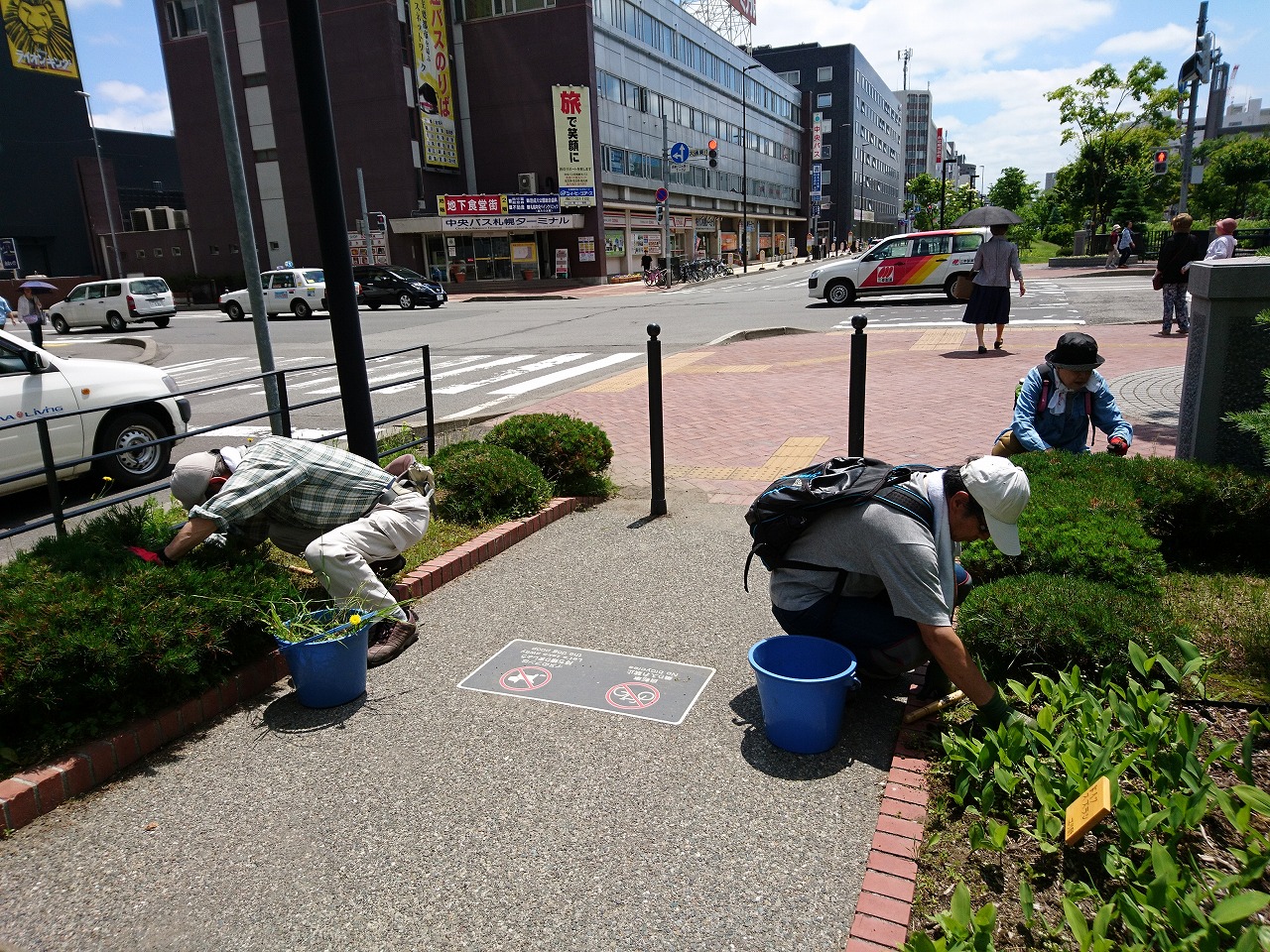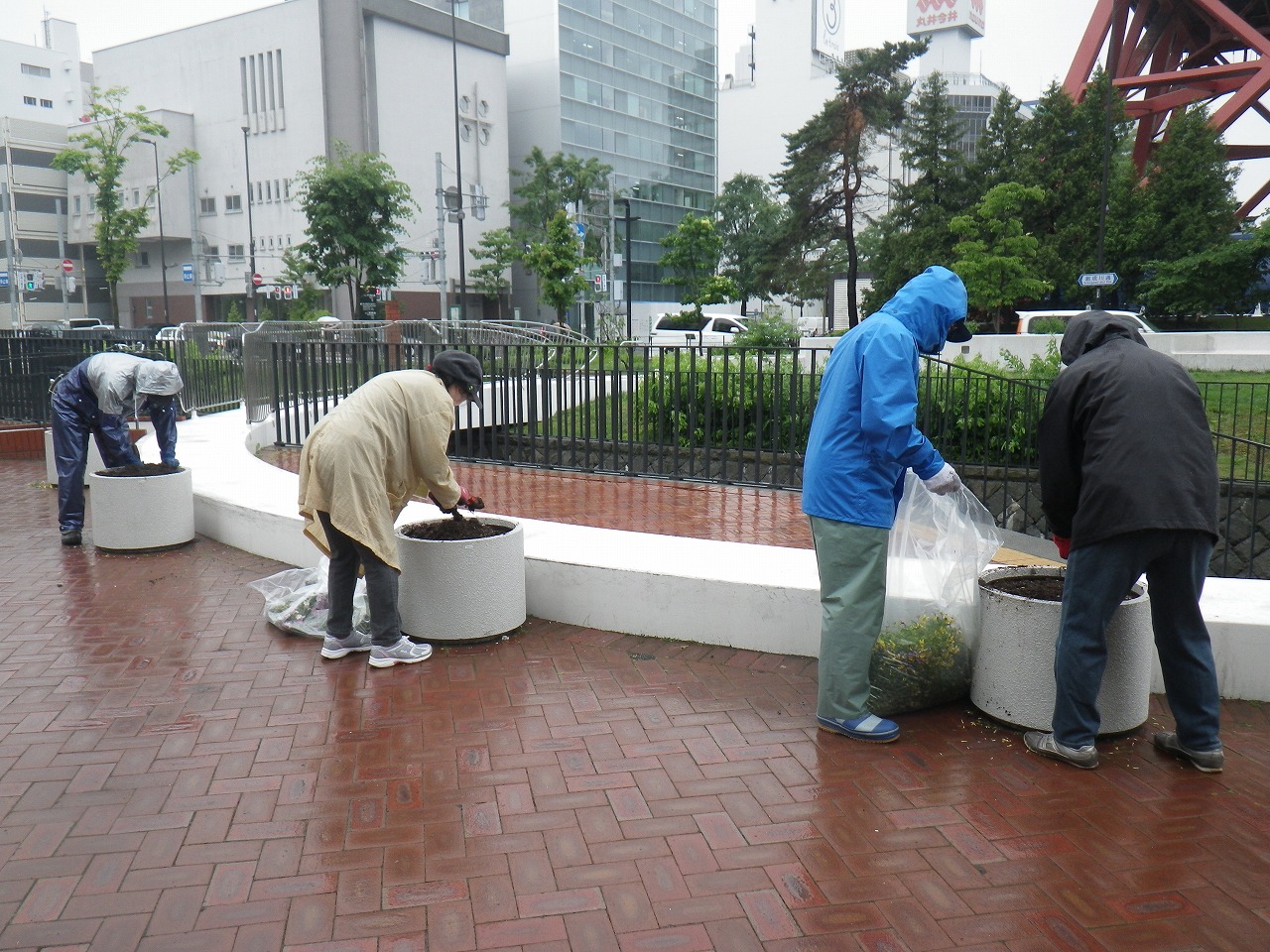 創成川公園の6月、植物・お助け隊・花くらぶの活動が、元気に行われました。