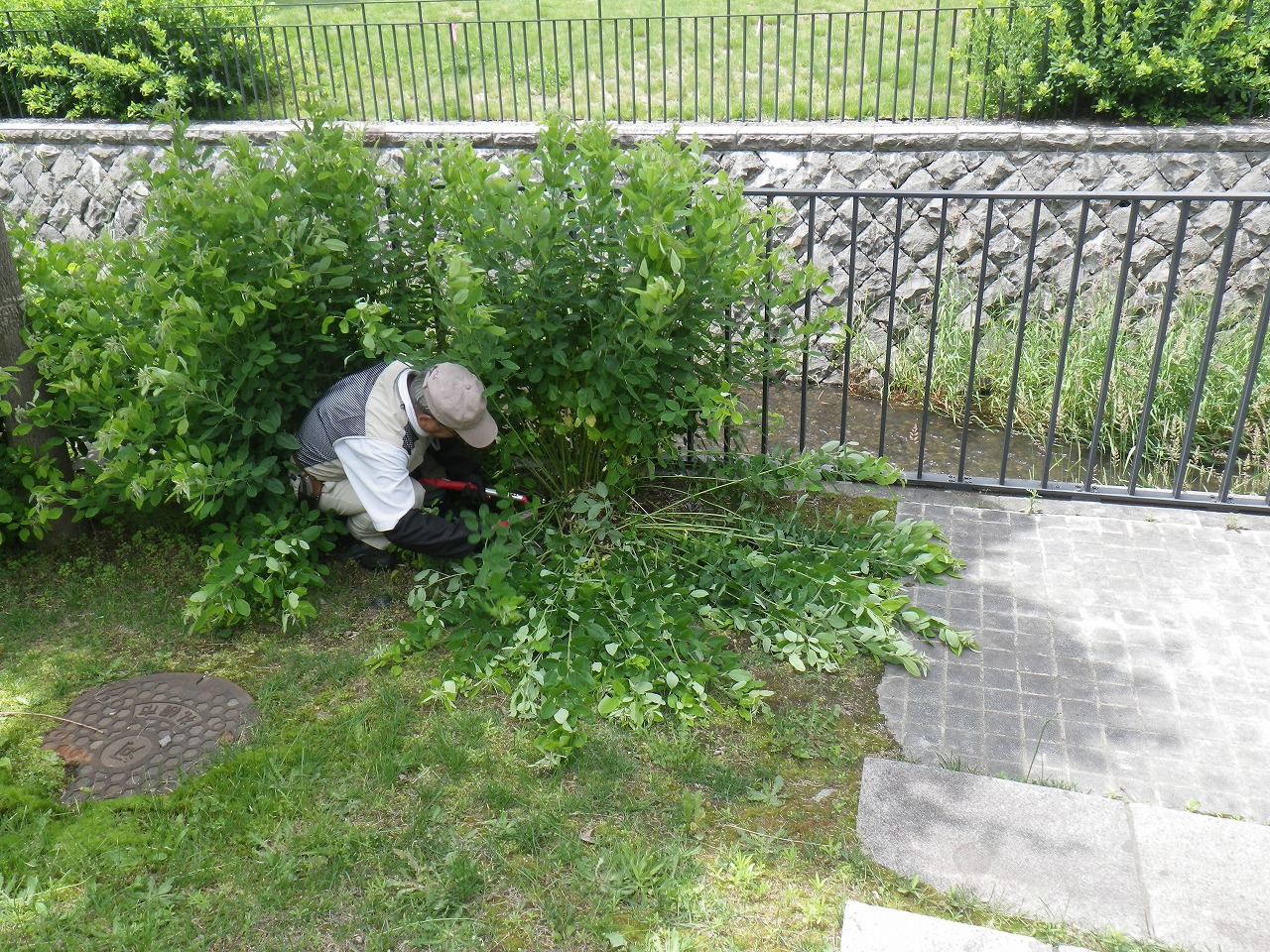 6月6日 ライラックの花がら摘みとビンカミノールの管理