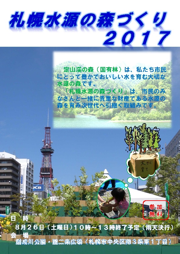 8月26日土曜日、狸二条広場にて、「水源の森」が開催されます。