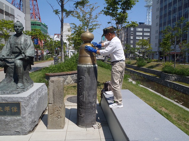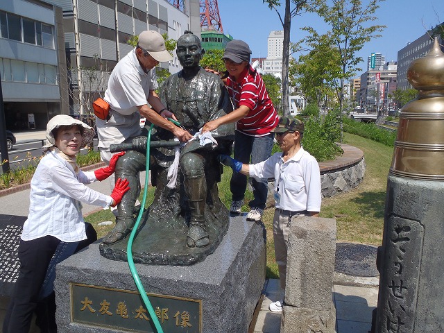 今日の活動は、南1条開拓の広場のモニュメントやベンチなどの清掃と周辺の雑草取り。
