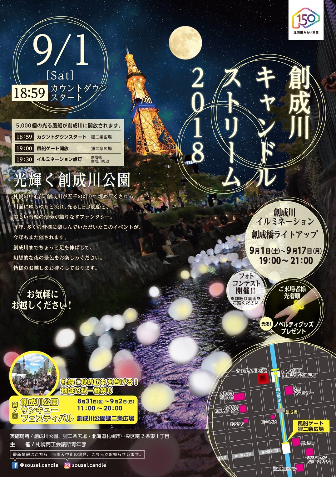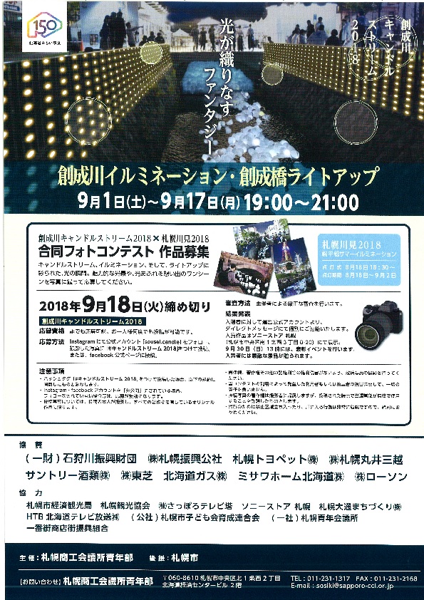 創成川公園サンキューフェスティバルが行われている9月1日土曜日の夜、創成川キャンドルストリーム2018が開催されます。