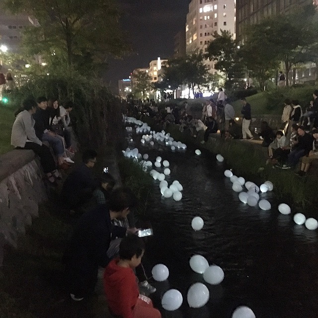 昨年に引き続き2回目の開催となるイベントで、公園内の創成川に光る風船を5000個流すというもの。