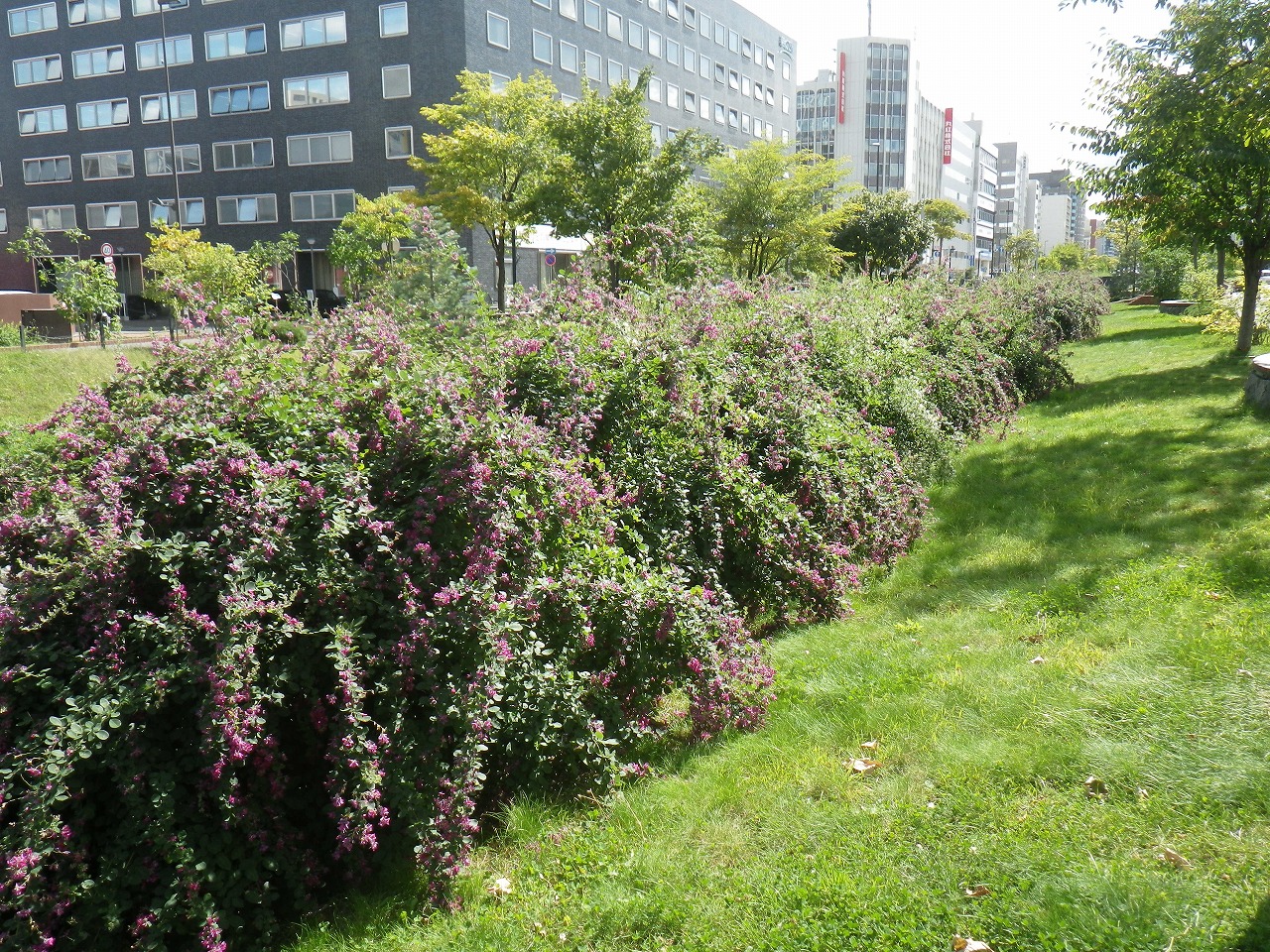 台風、地震と、大きな災害にみまわれた9月の上旬でしたが、少し落ち着きを取り戻した園内では、ハギの花が咲いています。 北1条では、見ごろを迎えようとしています。 南側でも、徐々に花開いています。 お天気のいい日に、ぜひ、見にいらしてください。