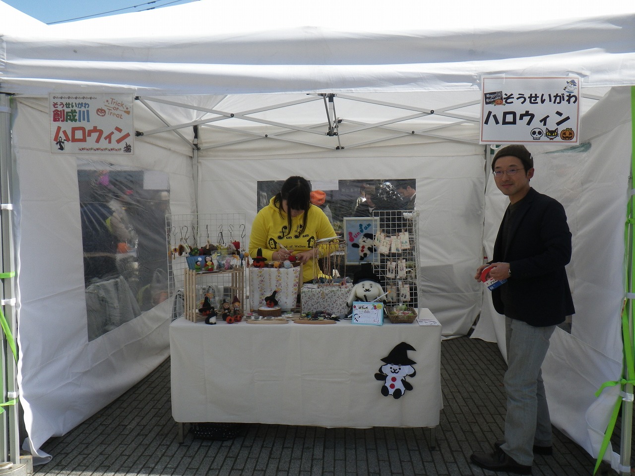 ハロウィン小物販売や野菜の販売、たこ焼きやお団子の移動販売車も