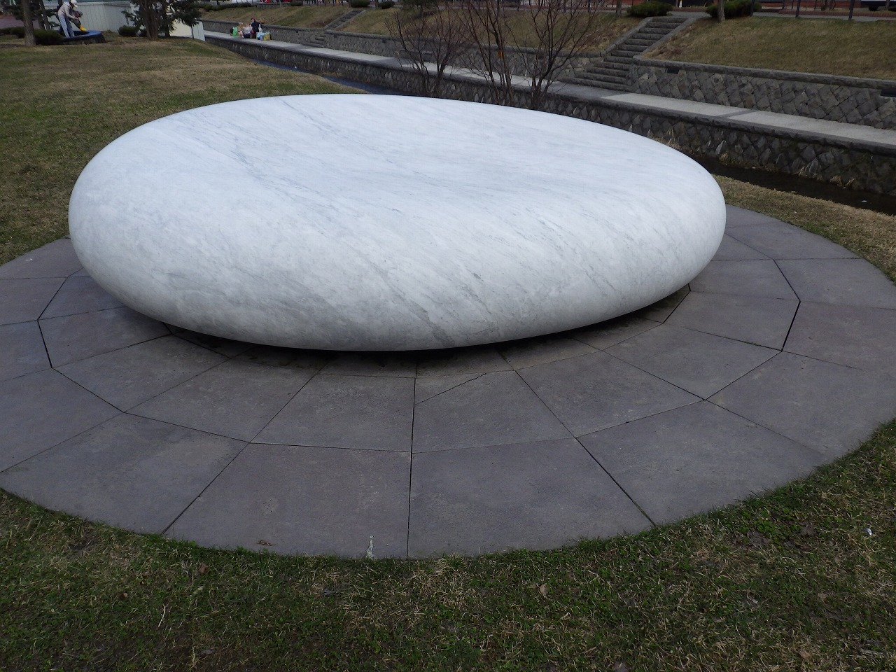 創成川公園も平成最後の春を迎えました。 雪解け後の芝生斜面からはチオノドクサが顔を出し、可愛いいつぼみをつけています。 早くも花開いているものも。 安田侃さんの彫刻、「生誕」「生棒」「天秘」もシートを外し、姿を現しました。