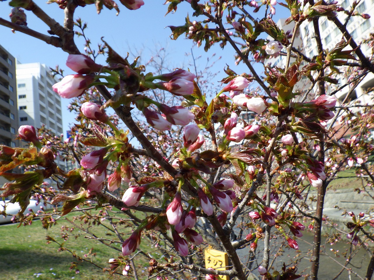 4月22日、園内のチシマザクラが、数輪、花開きました。 たくさんのつぼみももう少しで開くでしょうか。 キタコブシも可愛い花を咲かせています。 ライラックの花芽もすっかり色をのぞかせています。 ビンカミノールもたくさんの春の芽出しが見られました。 チオノドクサも、まだまだ輝きを見せています。 確実に春が来ていますね。