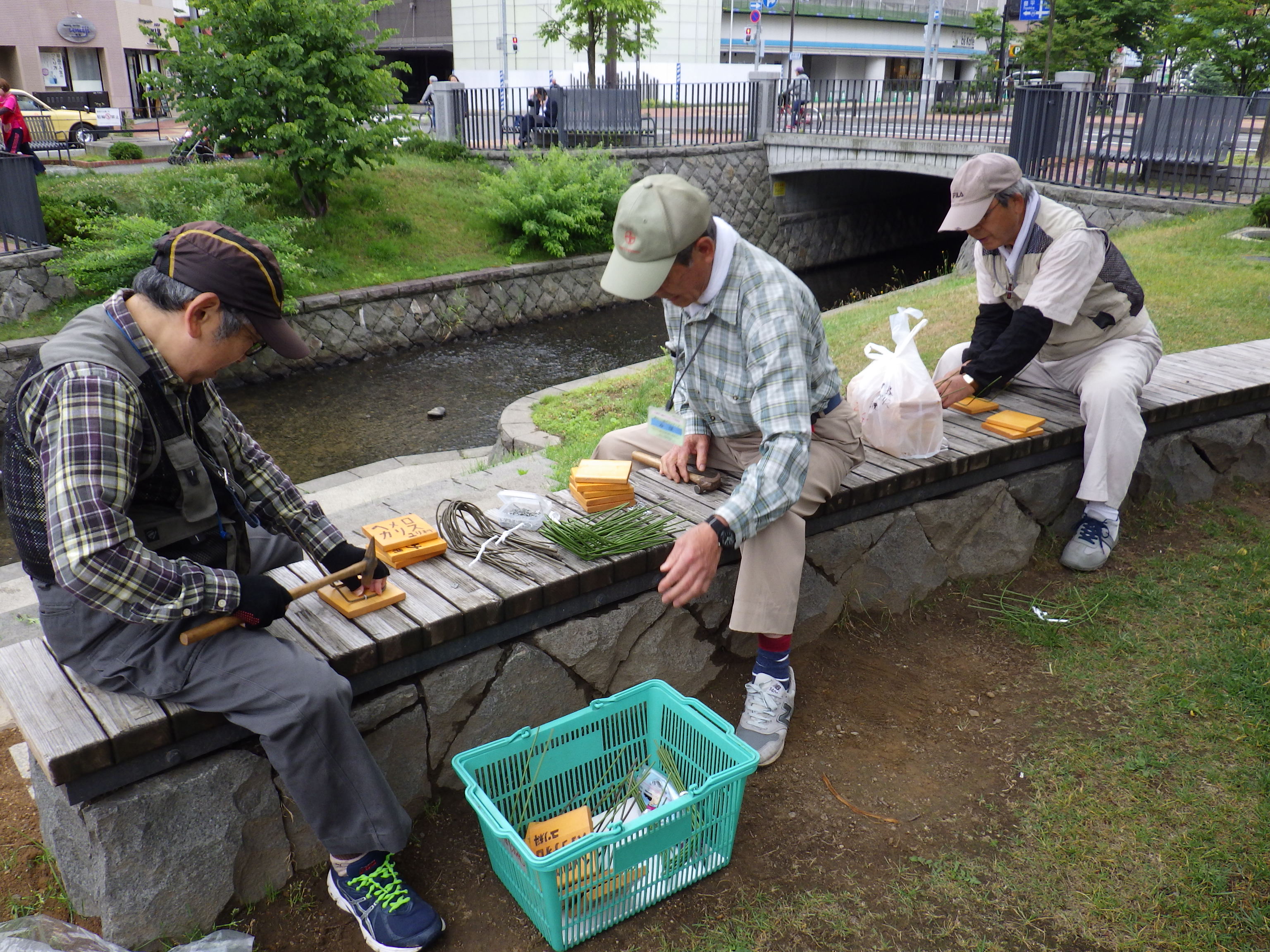 お助け隊がヘメロカリス花壇の花名板付けを行いました。 雑草に覆われてスズランが見えなくなってしまっていた、スズラン花壇の除草もしました。 咲き始めたヘメロカリスの花です。 夕張岳 リトルビックマン エッジドインゴールド