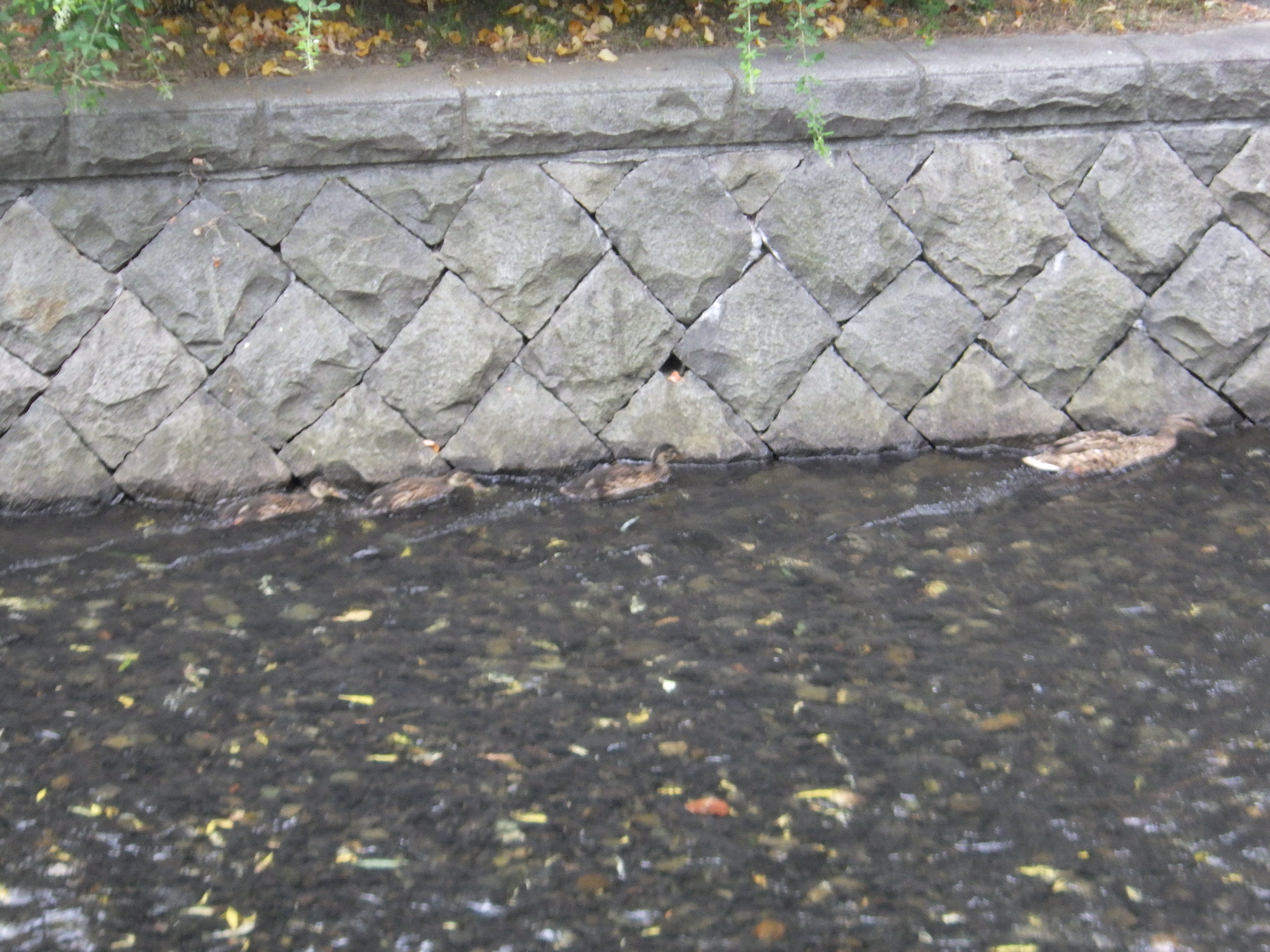8月2日金曜日、公園内を流れる創成川では、カモの親子がのんびりと泳いでいました。