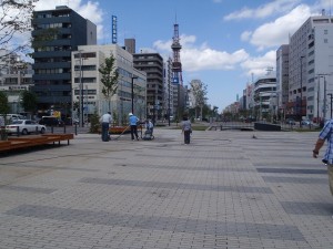 ビアガーデンで賑わっていた広場も、またもとの見通しの良い「狸二条広場」に戻りました。
