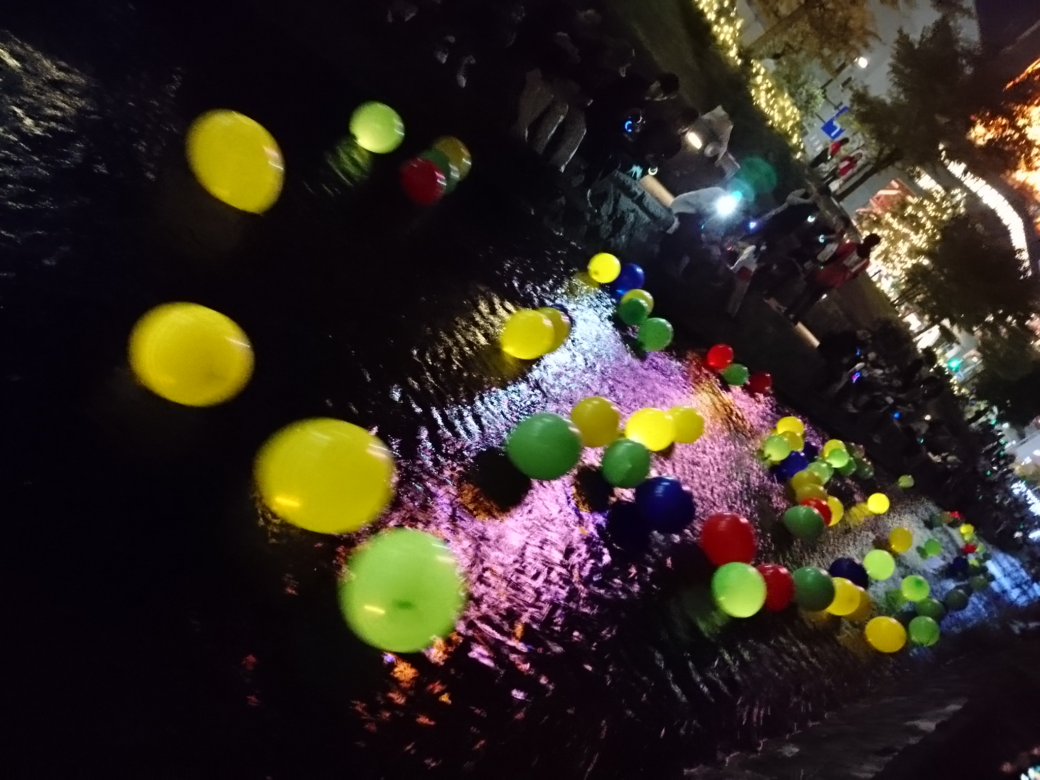 9月28日土曜日、創成川キャンドルストリームで創成川に5000個の風船が流されました。