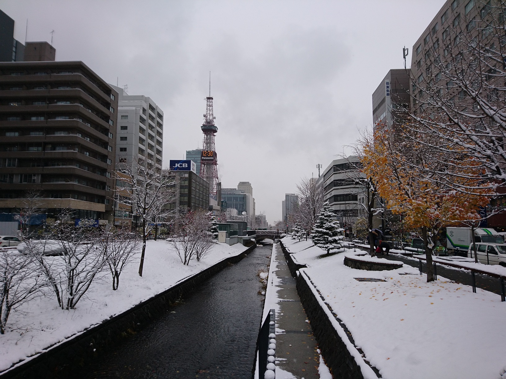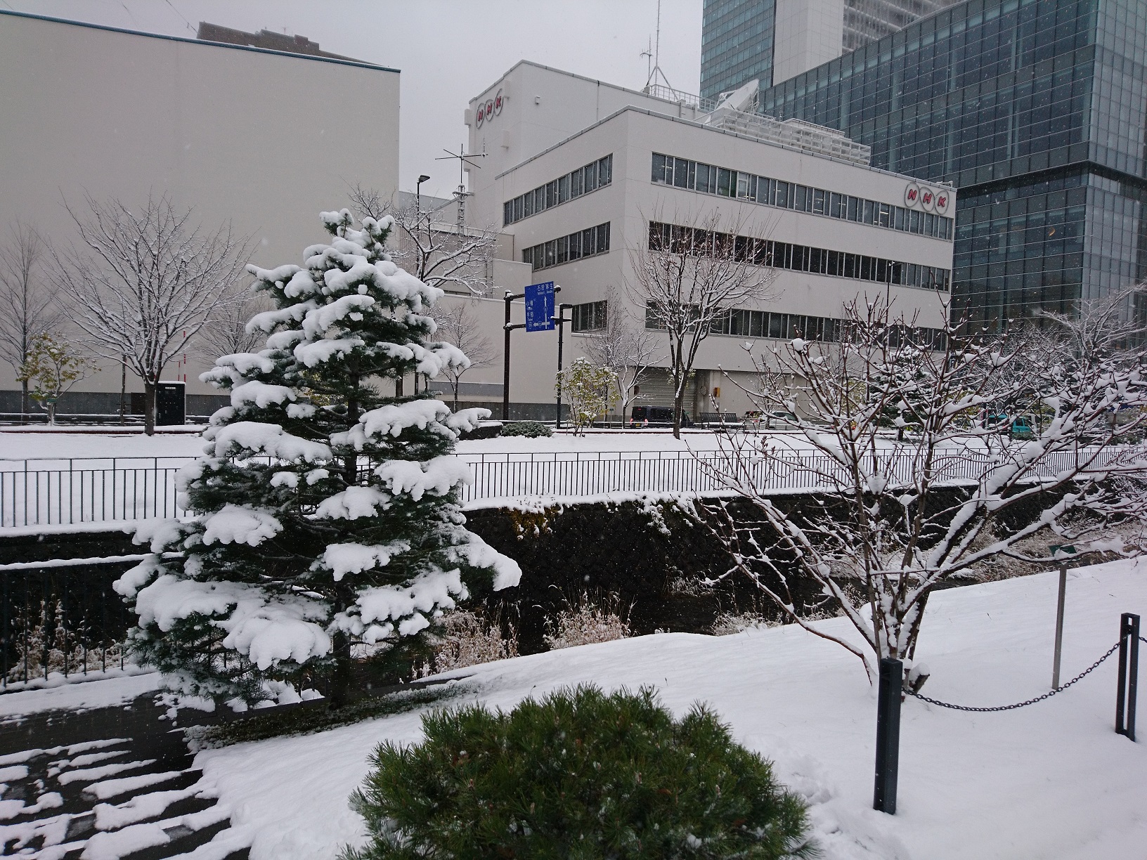 道内に暴風雪警報が出される中、創成川公園も雪景色です。