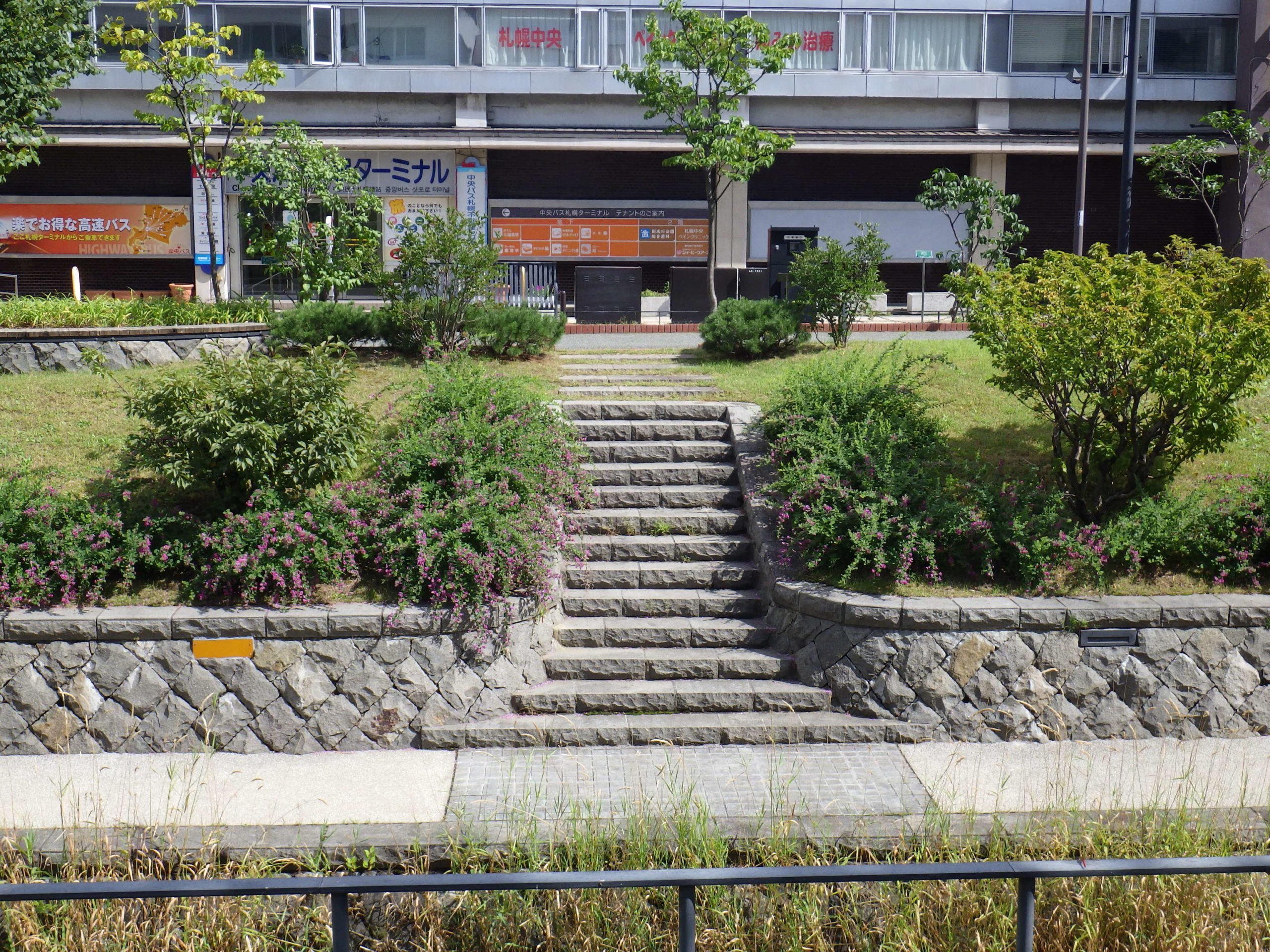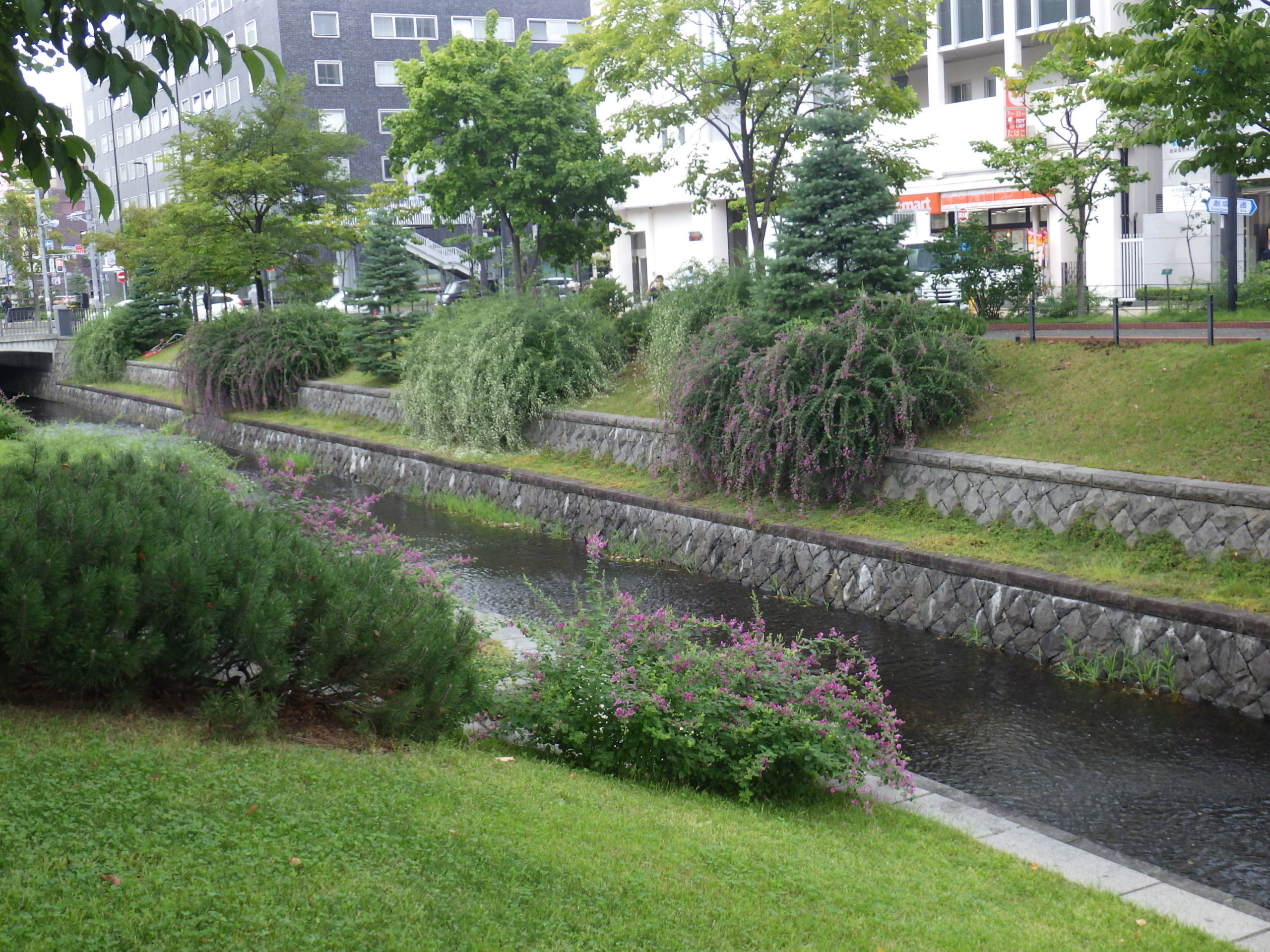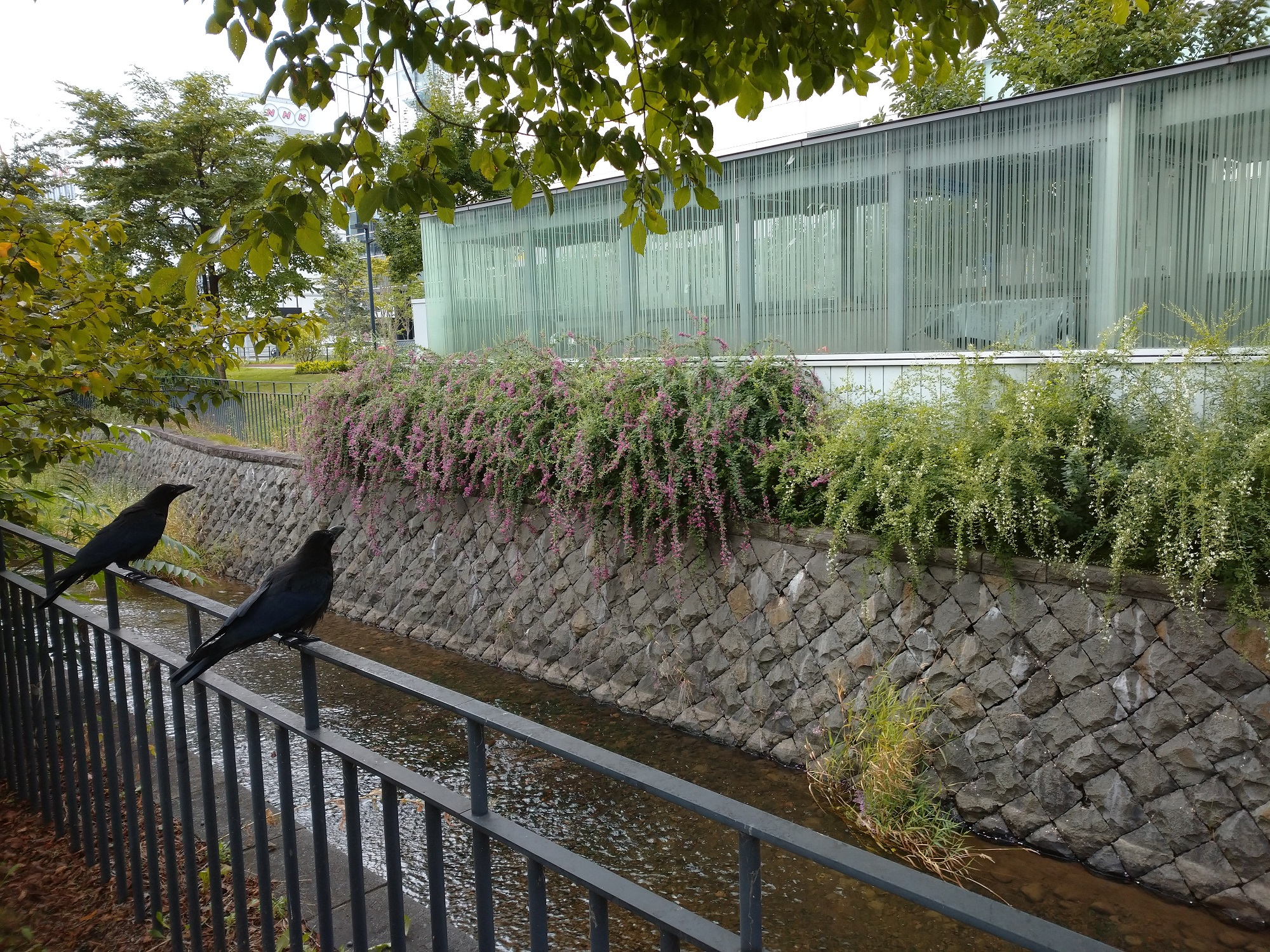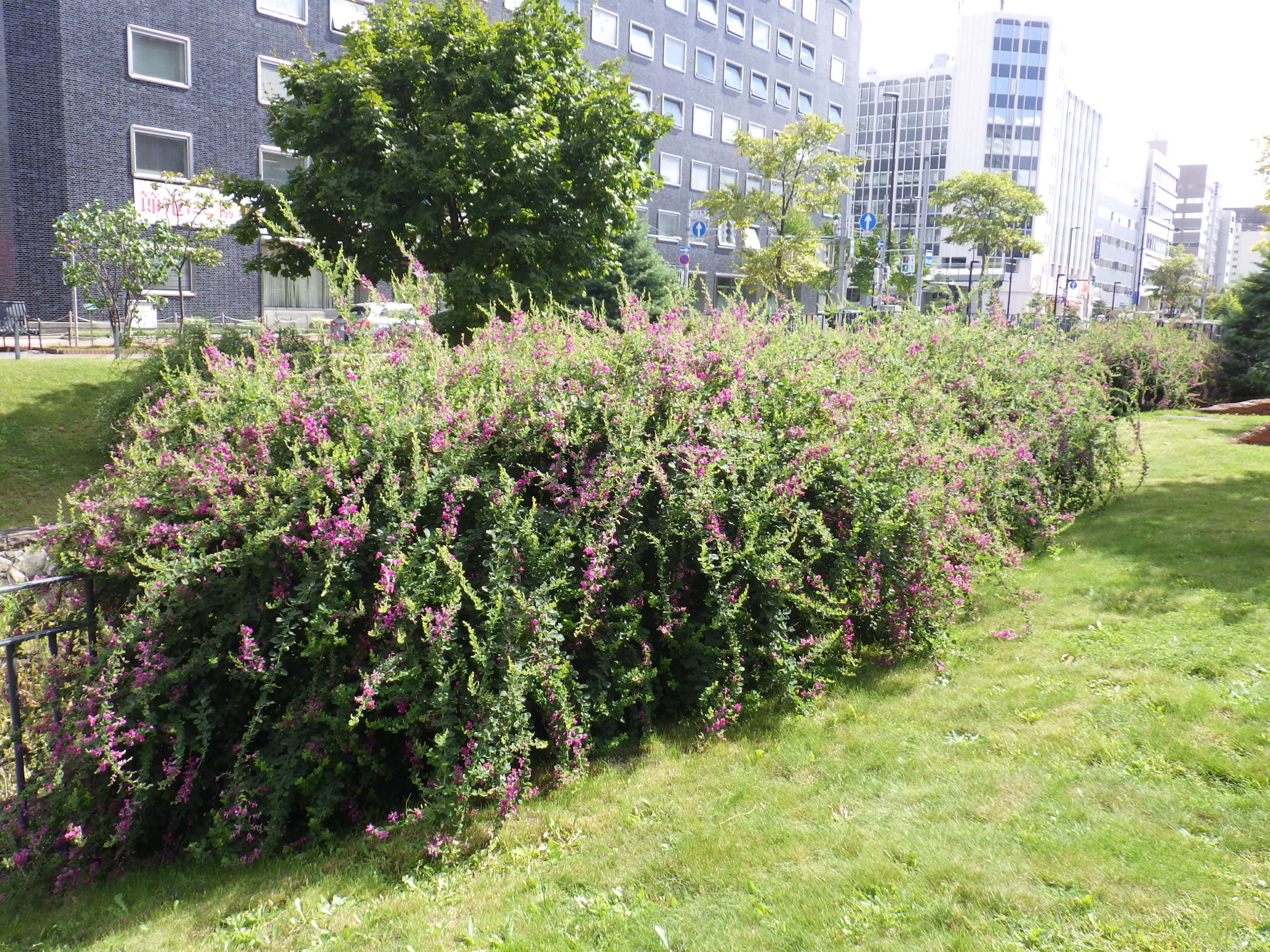 公園内のハギがだいぶ花開いてきました。 まだ満開とまではいきませんが、これからがハギの季節です。 北1条の東側、階段横のハギは6月に一度刈り込んでいるので小さいですがしっかり花が咲いてきています。 北1条西側の川沿いのハギはボリュームがあります。 南1条の東側も見ごたえのあるハギです。手前西側も一度刈り込んだハギですが、花付きは変わりません。 北2条では、カラスもハギを見ていました。