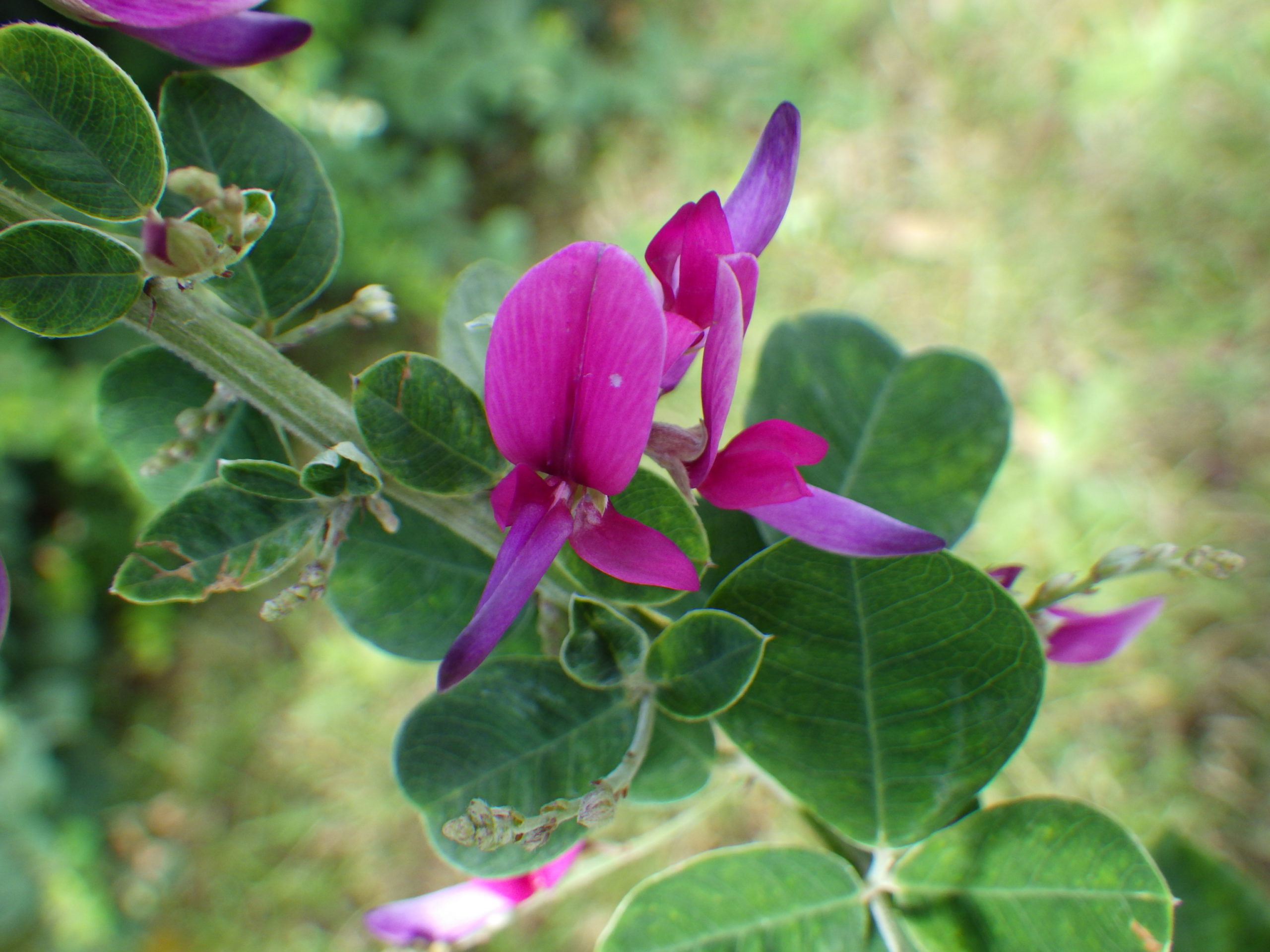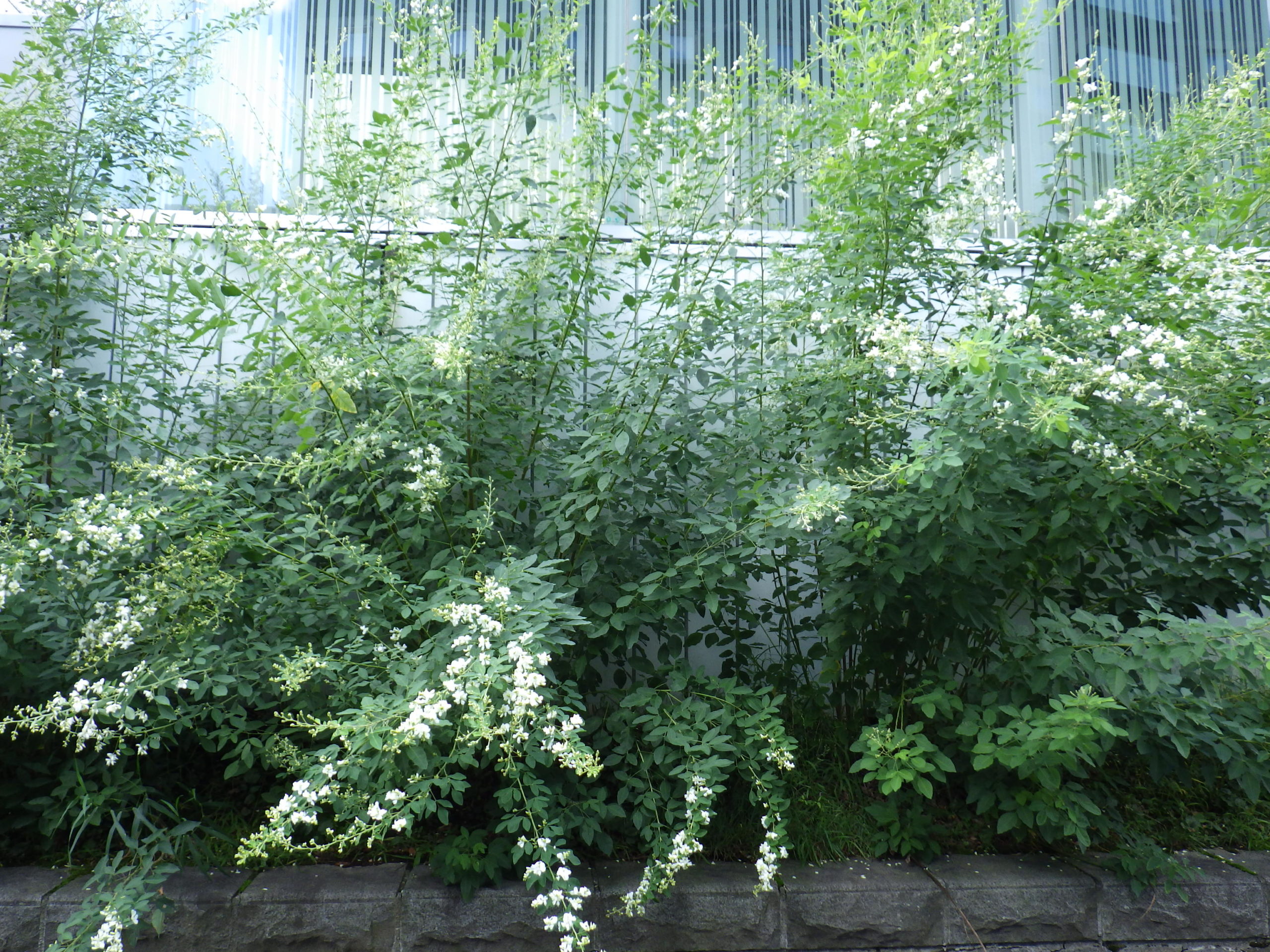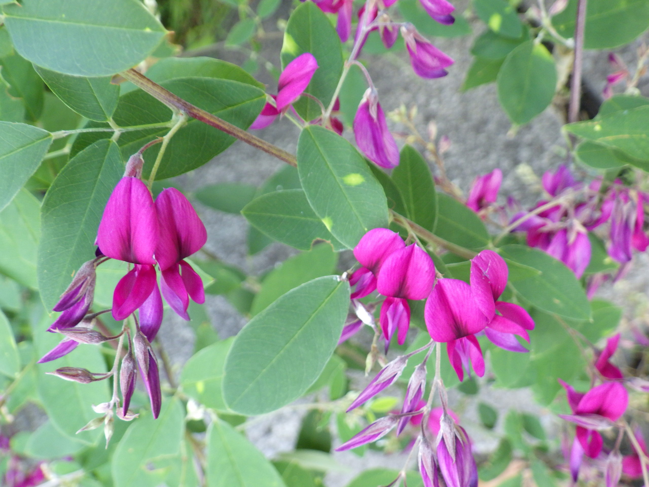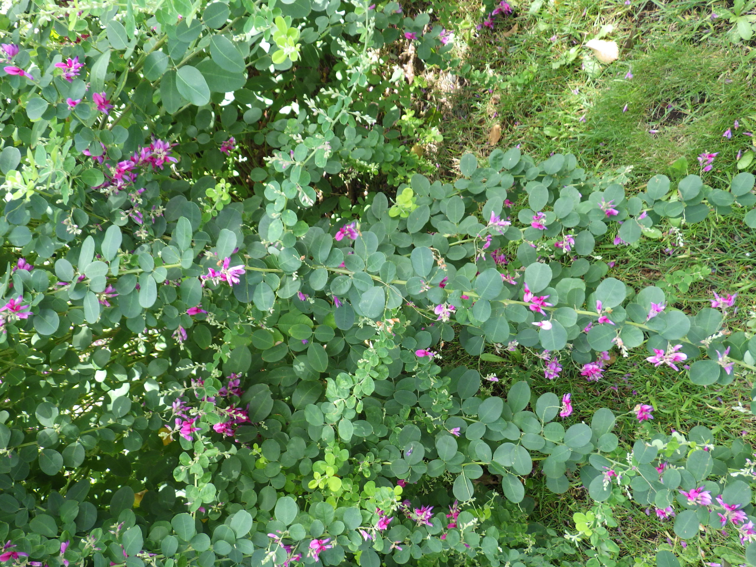 園内で今盛んに花を咲かせているハギ。 垂れ下がって花を咲かせているのはミヤギノハギですが、野生種のケハギも交ざって植えられているようです。 ミヤギノハギとケハギの見分けは、葉の形が細長いのがミヤギノハギ、丸いのがケハギ、とのこと。 見比べてみると。 また、白い花には垂れ下がるミヤギノハギと立ち上がるシラハギがあります。 離れてみても見ごたえのあるハギですが、少し近づいて見てみてくださいね。