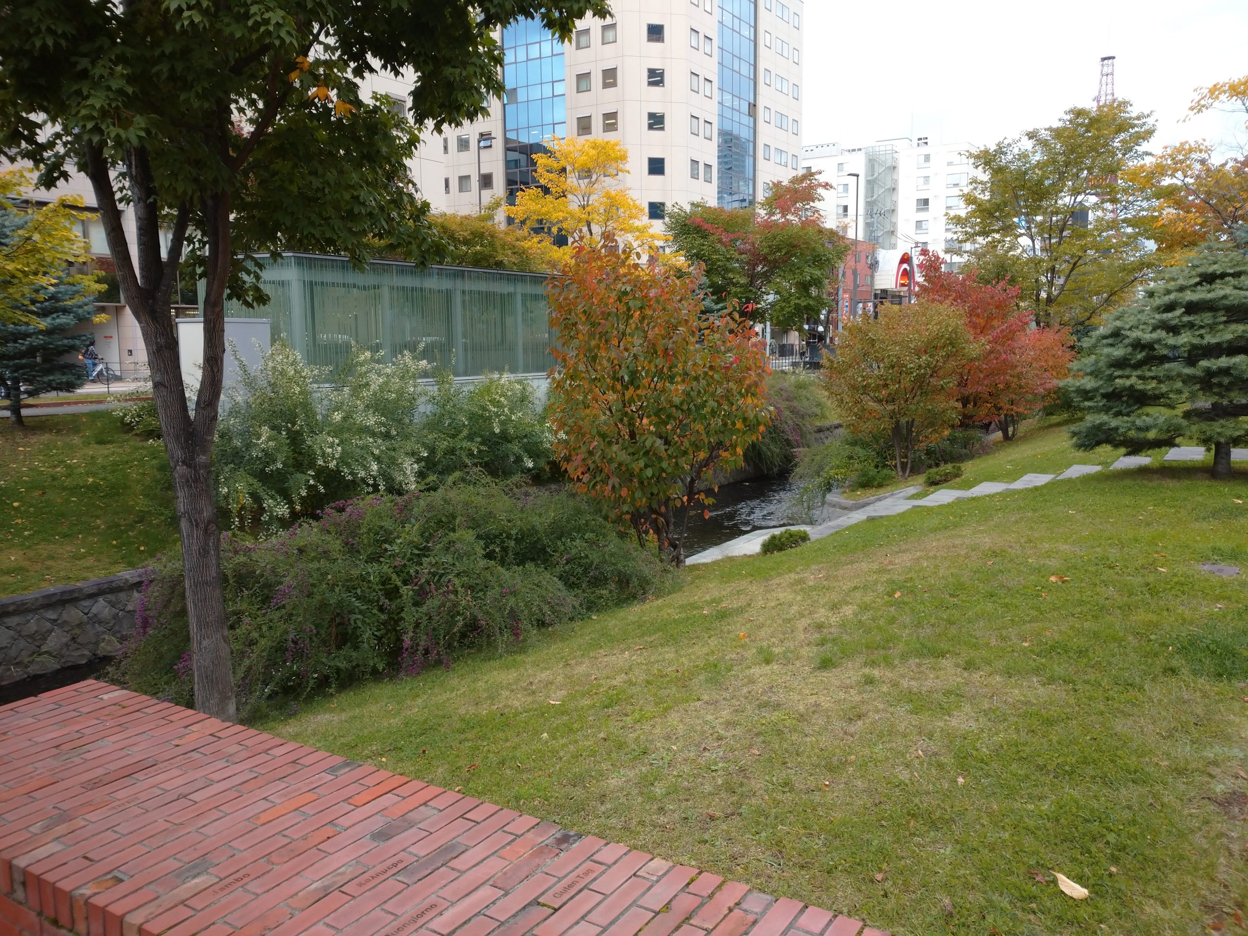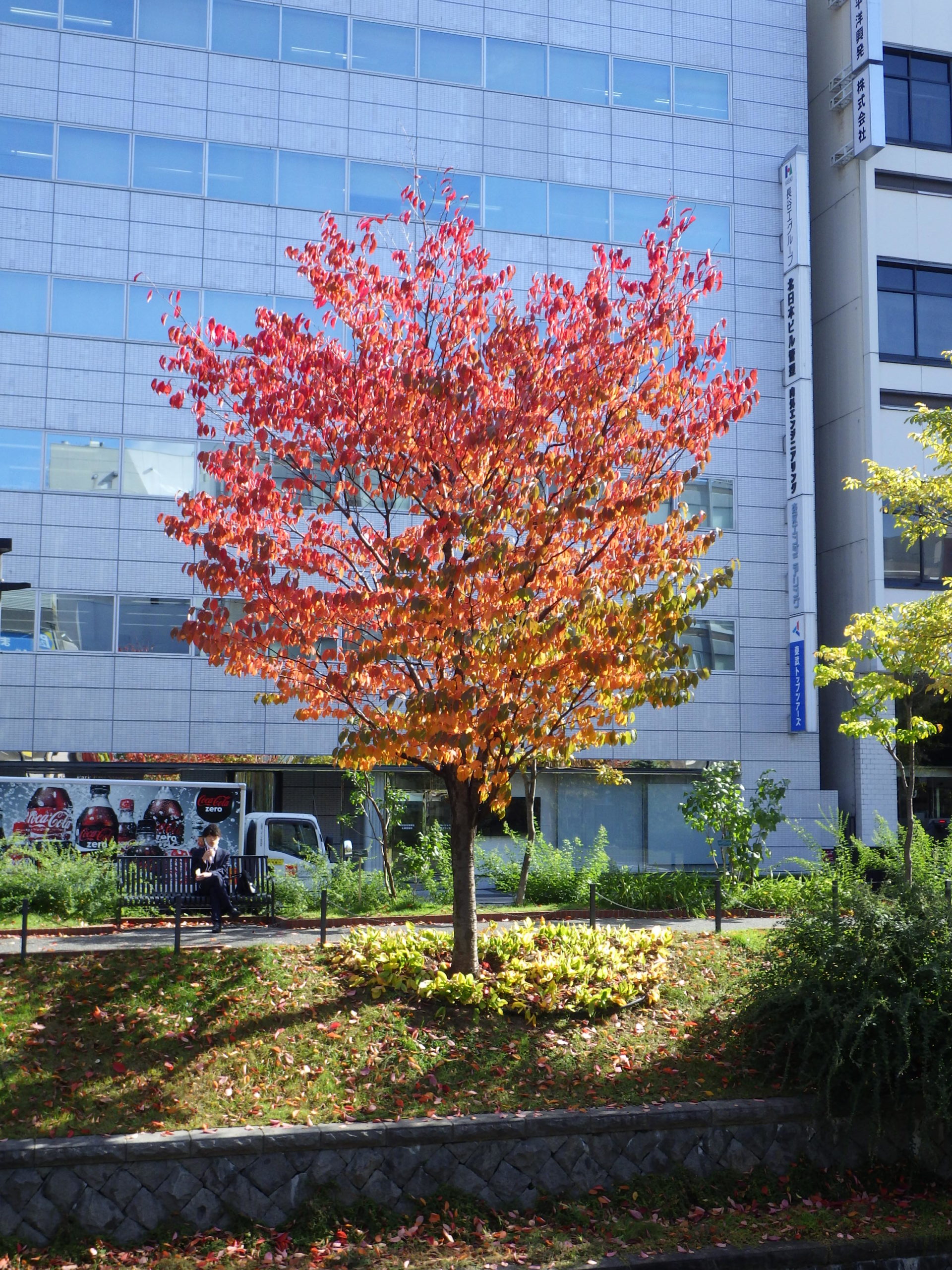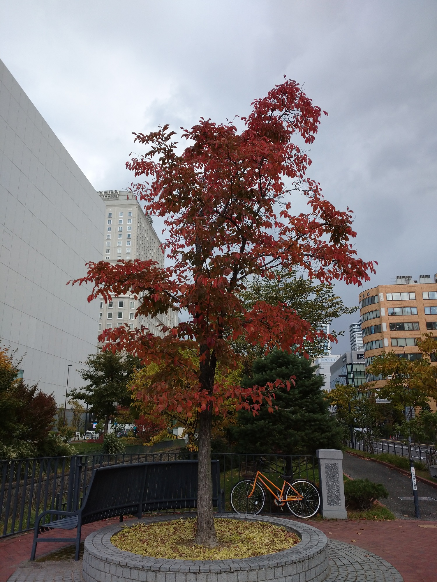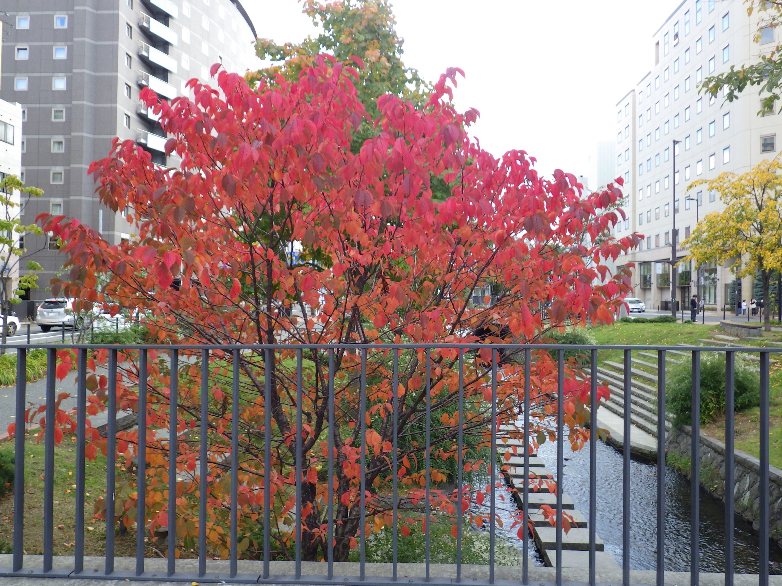 このところ寒さも増して、紅葉も進んでいます。 チシマザクラ、エゾヤマザクラの赤。ハルニレ、ハシドイ、キタコブシの黄。ハルニレは赤くなっているものも。 南1条 南2条 南4条 そんな中、ライラック四季藍も咲いていました。