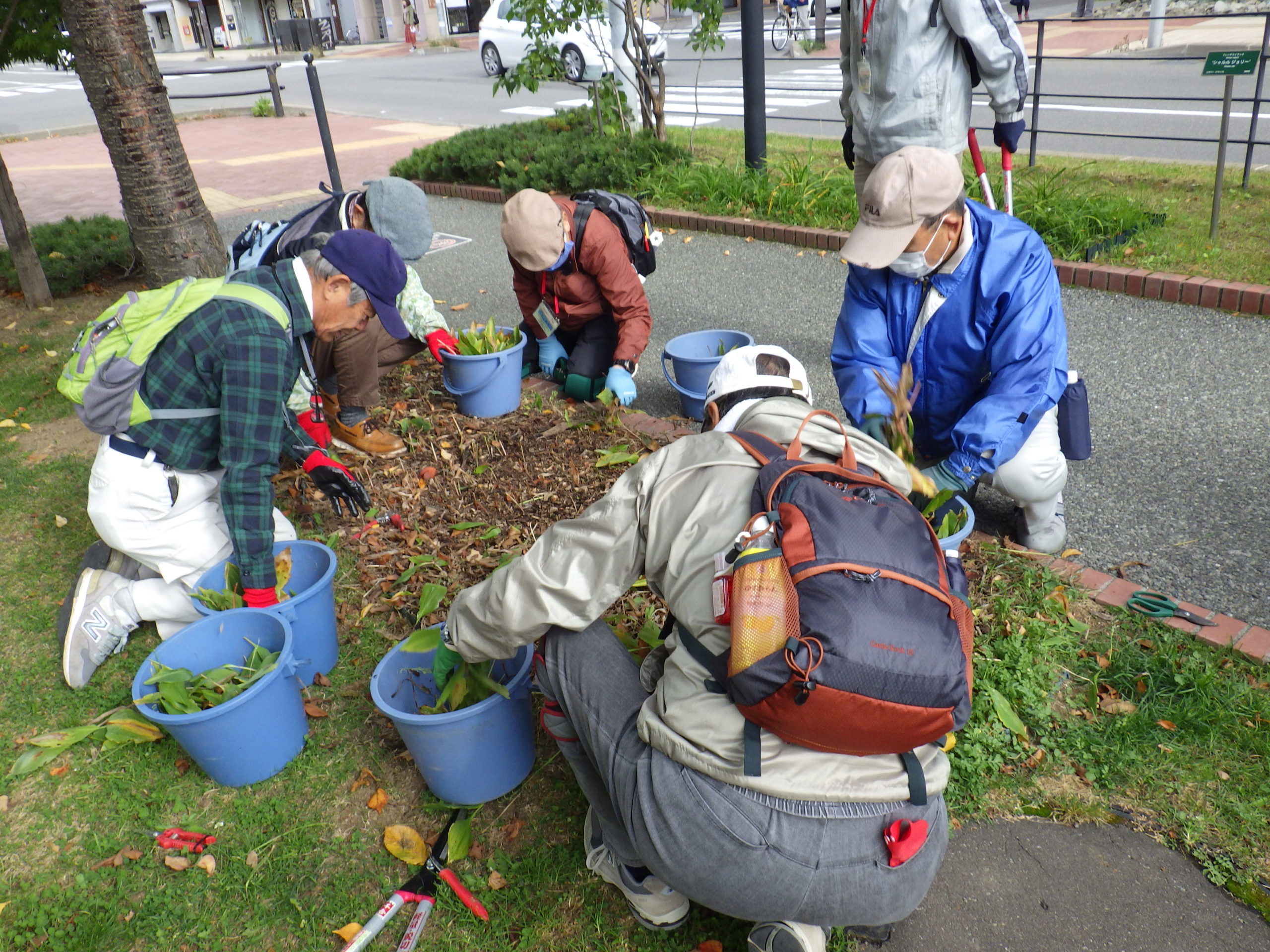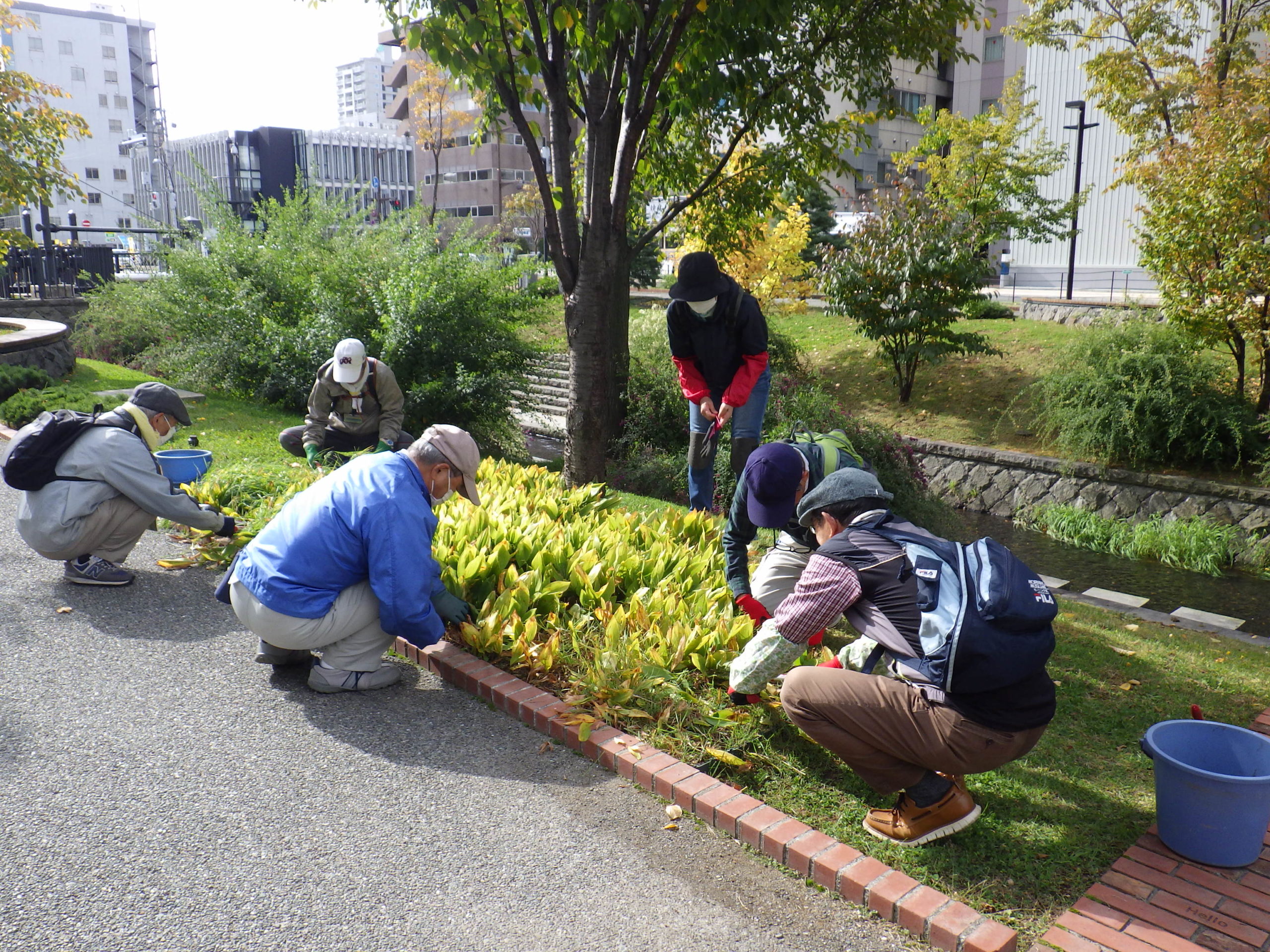 10月も半ばになり、花壇の冬支度が始まっています。 お助け隊では、10月14日水曜日からスズランの刈り取りを行っています。 植物ボランティアでは、10月20日火曜日からヘメロカリスの刈り取りを開始しました。 花の咲き終わったハギは、10月16日金曜日から刈り取り作業をしています。 縄で縛られ、刈り取りを待つハギ ハギの刈り取りが終わった南1条 ハギの刈り取りが終わった北1条