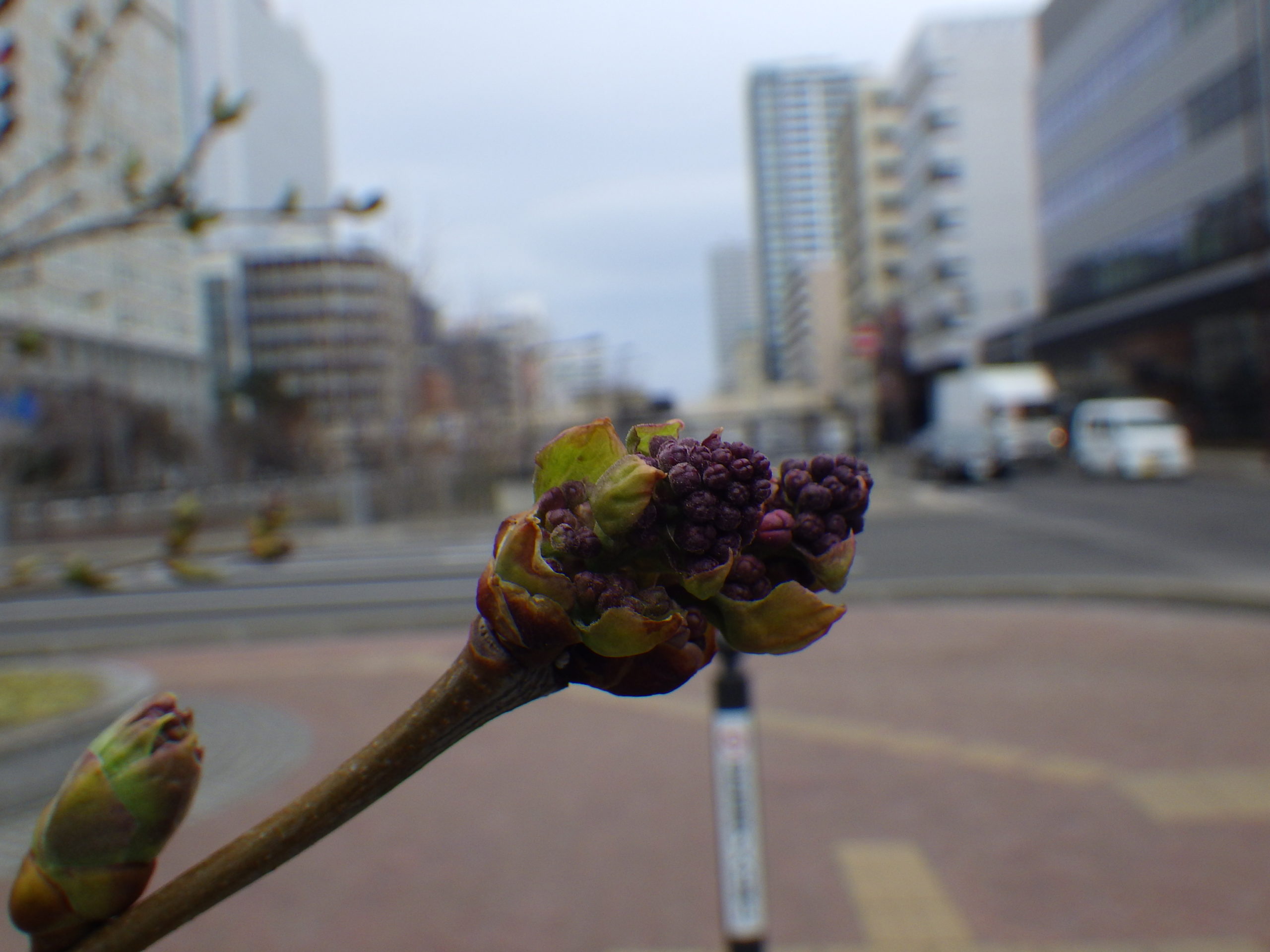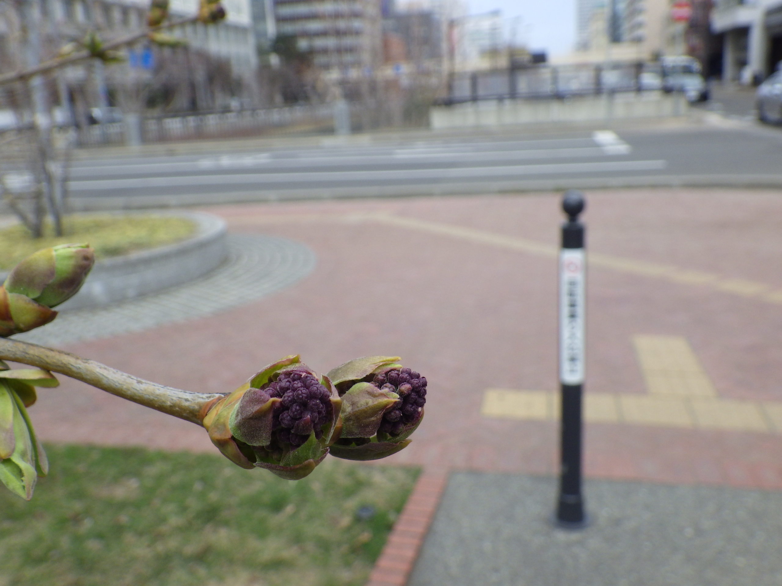 キタコブシの花が開き始めました。 今日の南2条のキタコブシです。 こちらは4月11日、まだ固いつぼみでした。 今日のチシマザクラのつぼみです。 こちらは4月11日の同じ木のつぼみ、まだ固い様子でした。 ライラックのアセシッピーもずいぶん花芽がはっきりしてきました。 チオノドクサもあちこちで咲いています。