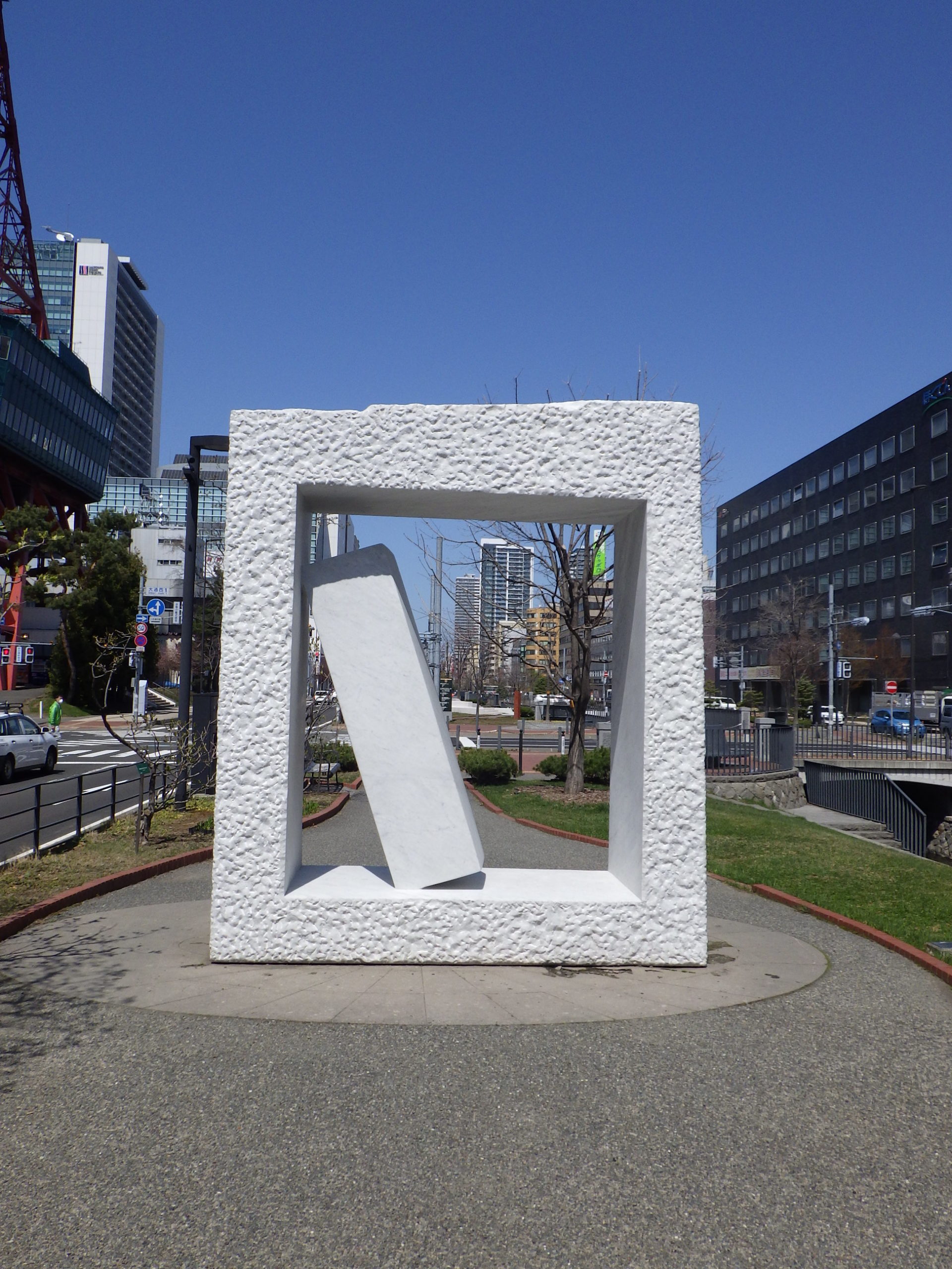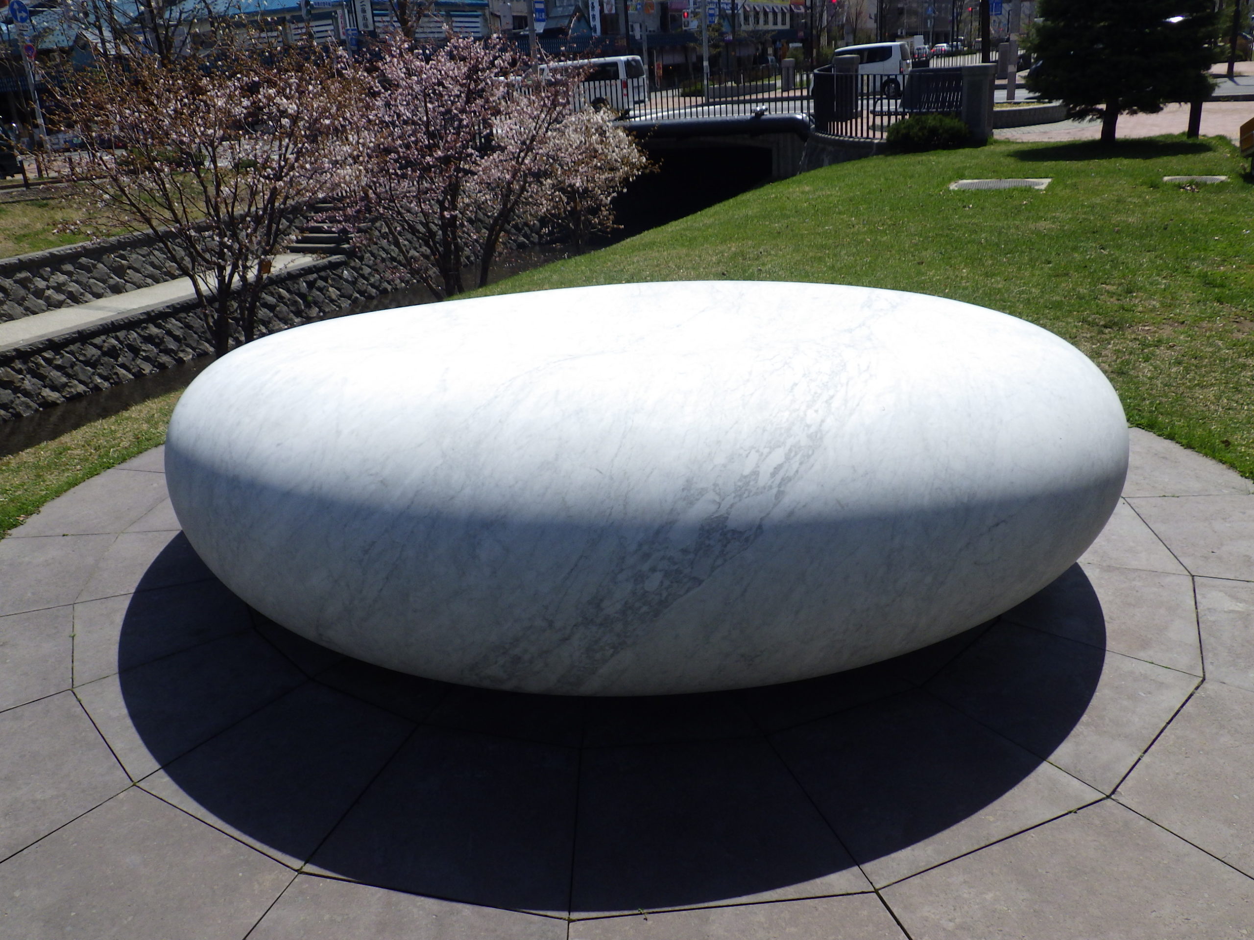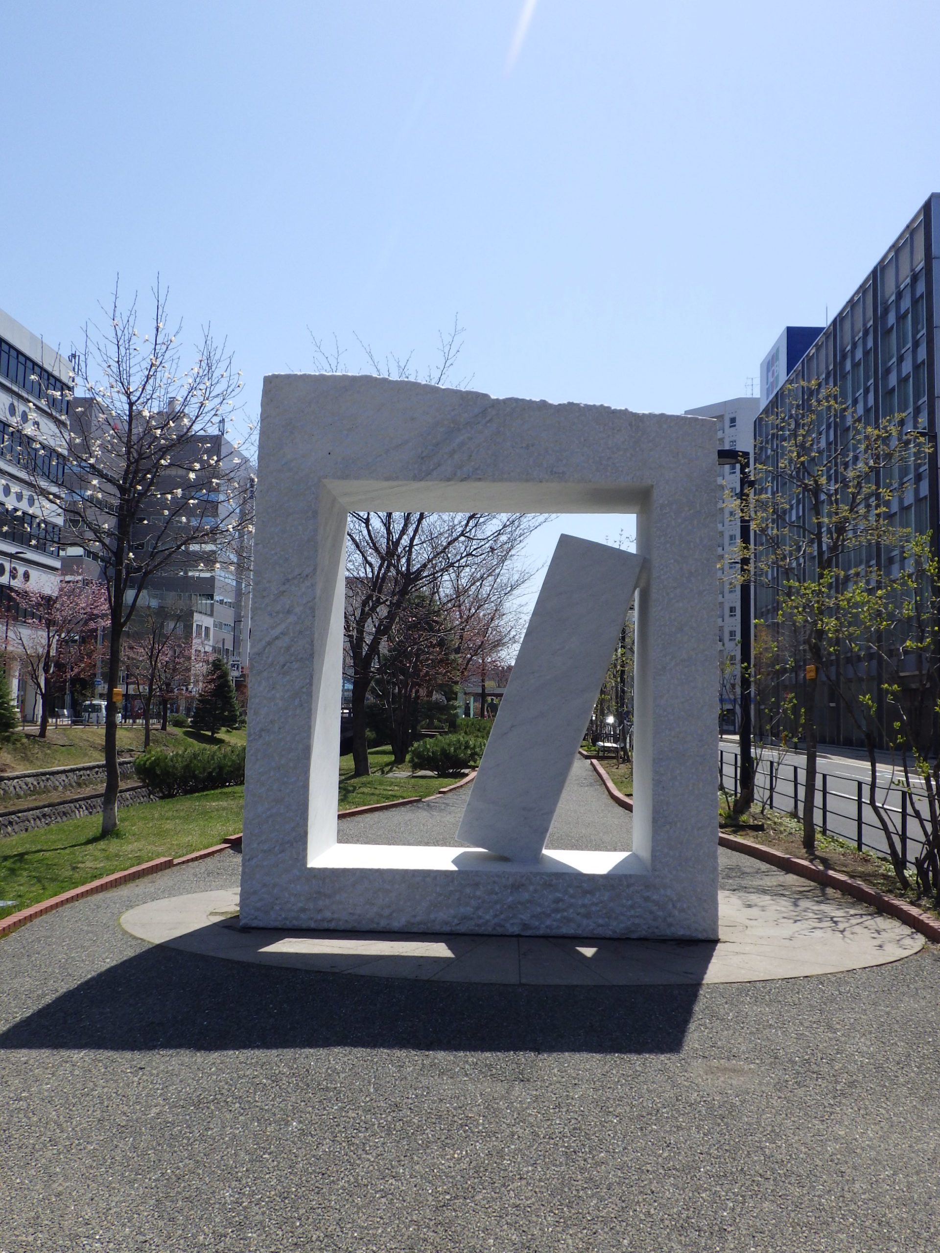 4月23日金曜日、安田侃さんの白大理石の彫刻作品の冬囲いシートが外されました。 狸二条広場に設置されている「生誕」 南2条西側に設置されている「天秘」 南2条東側に設置されている「生棒」 南1条に設置されている「生棒」 今年も、美しい姿を見せてくれました。