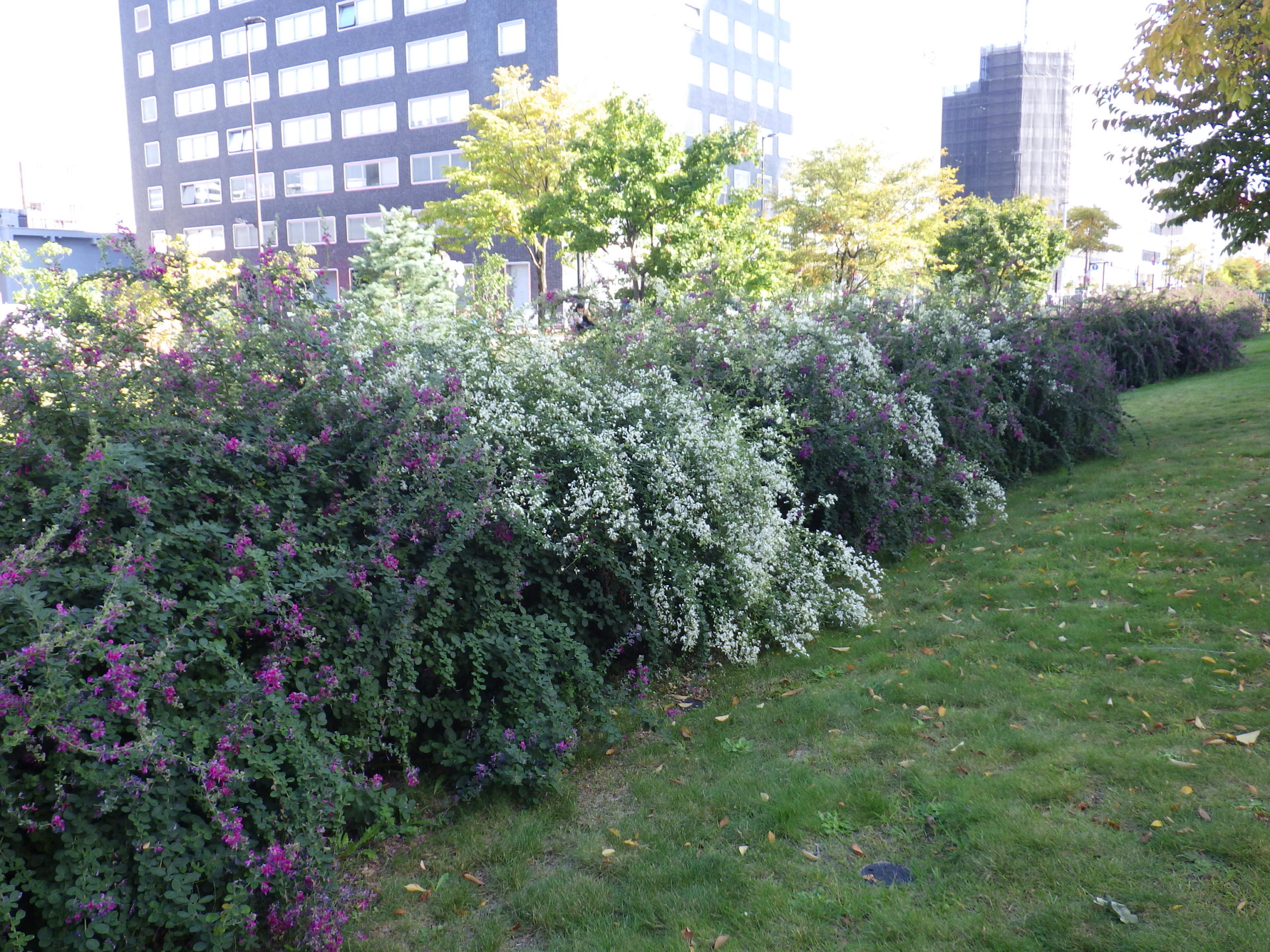 公園内の創成川沿いには、秋を彩る「ハギ」が植えられています。