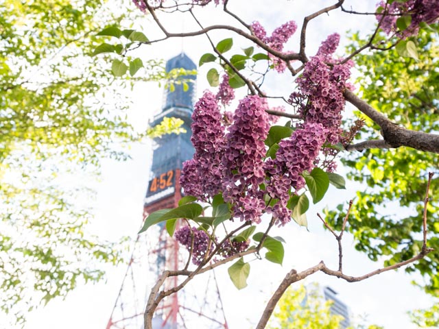 テレビ塔とライラックの花は札幌ならではの風景ですね。