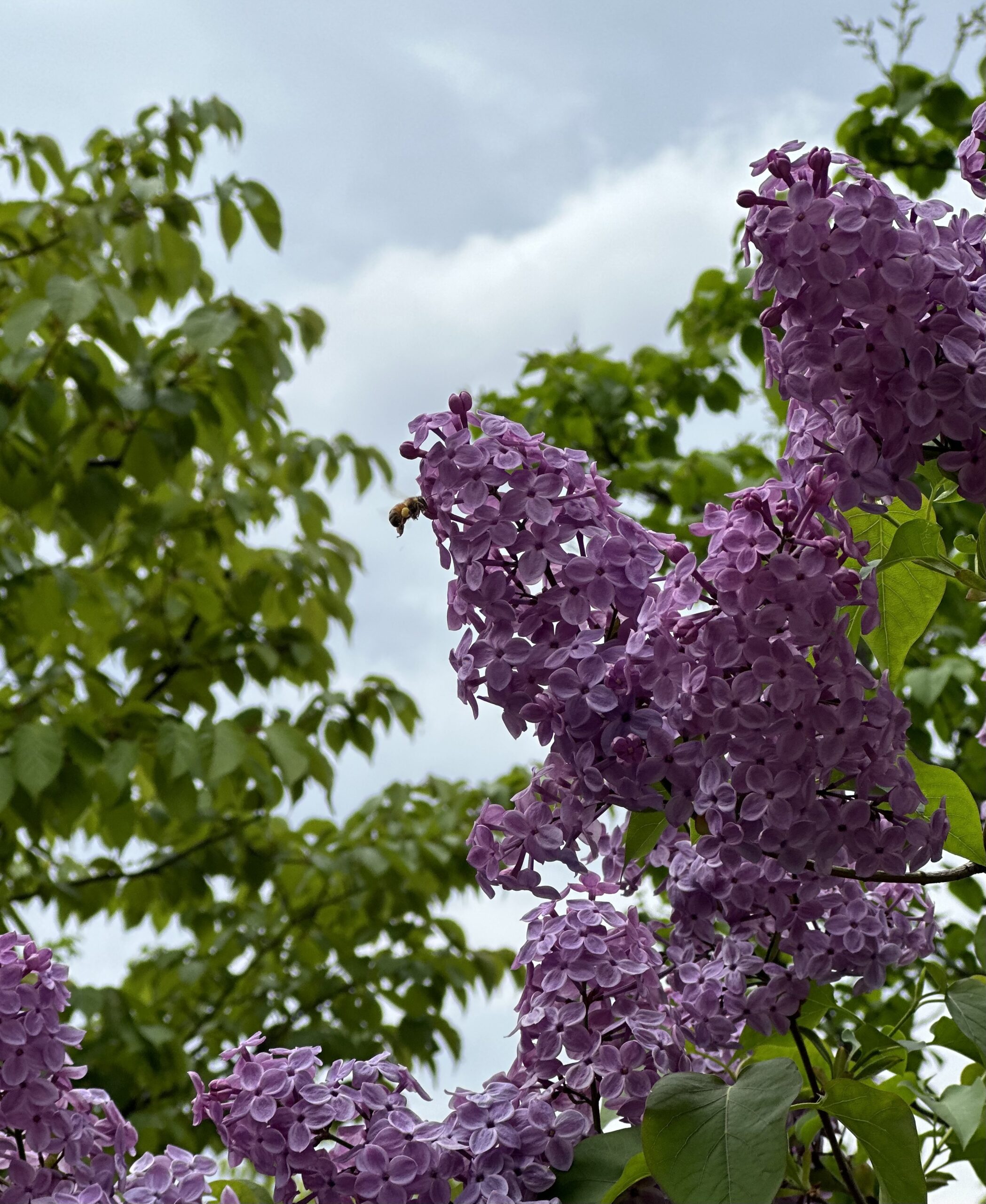 ライラックの甘〜い香りに誘われて、蜂さんが蜜を集めていました^^