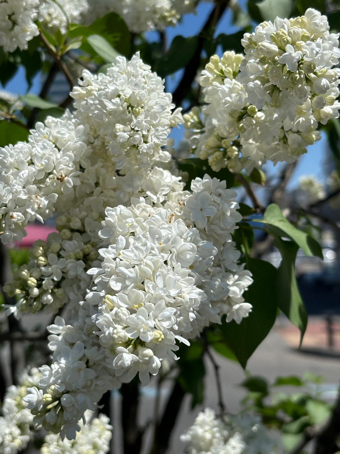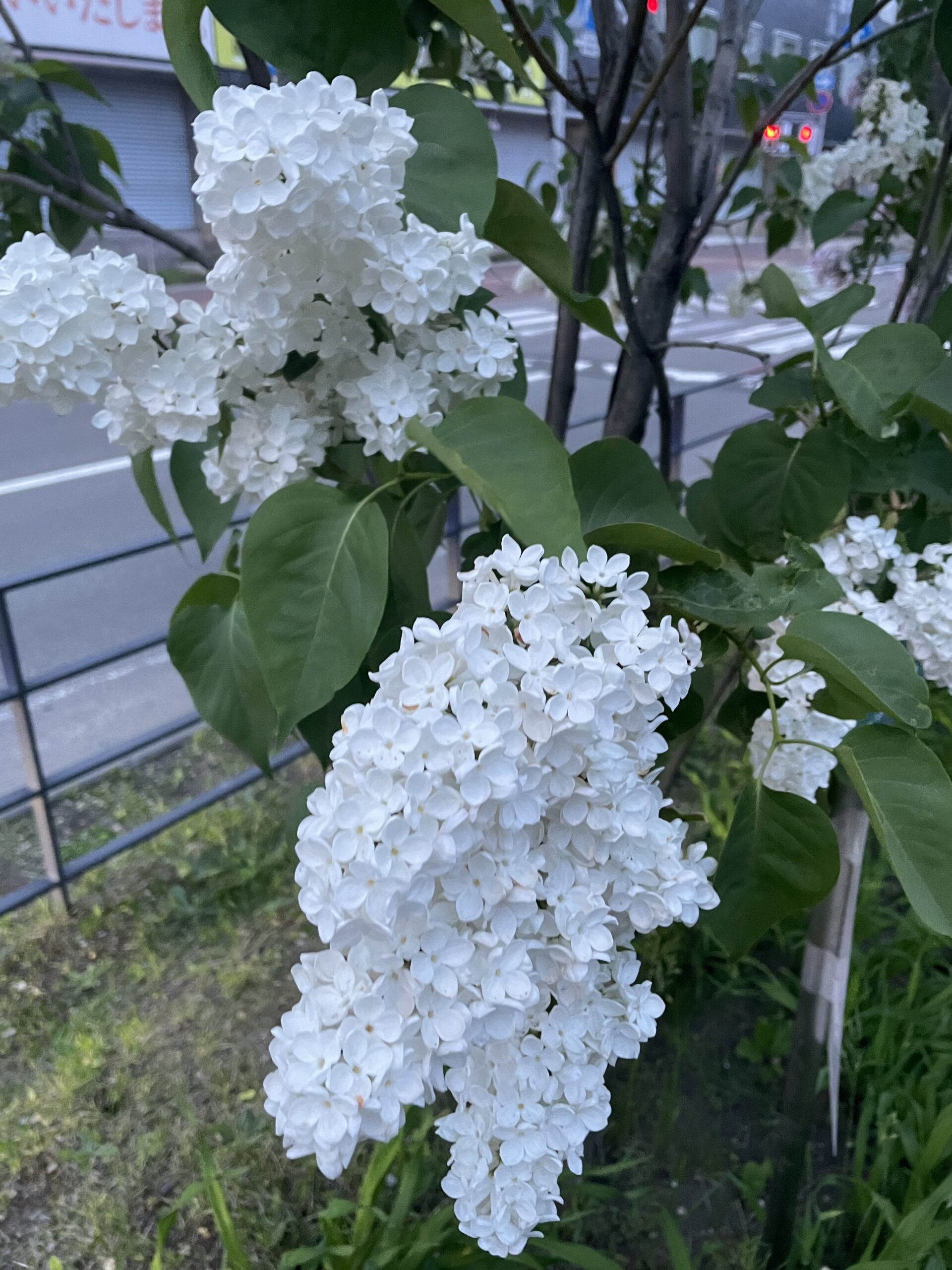 ライラックは紫色やピンクが多いですが、白いライラックも綺麗ですねー