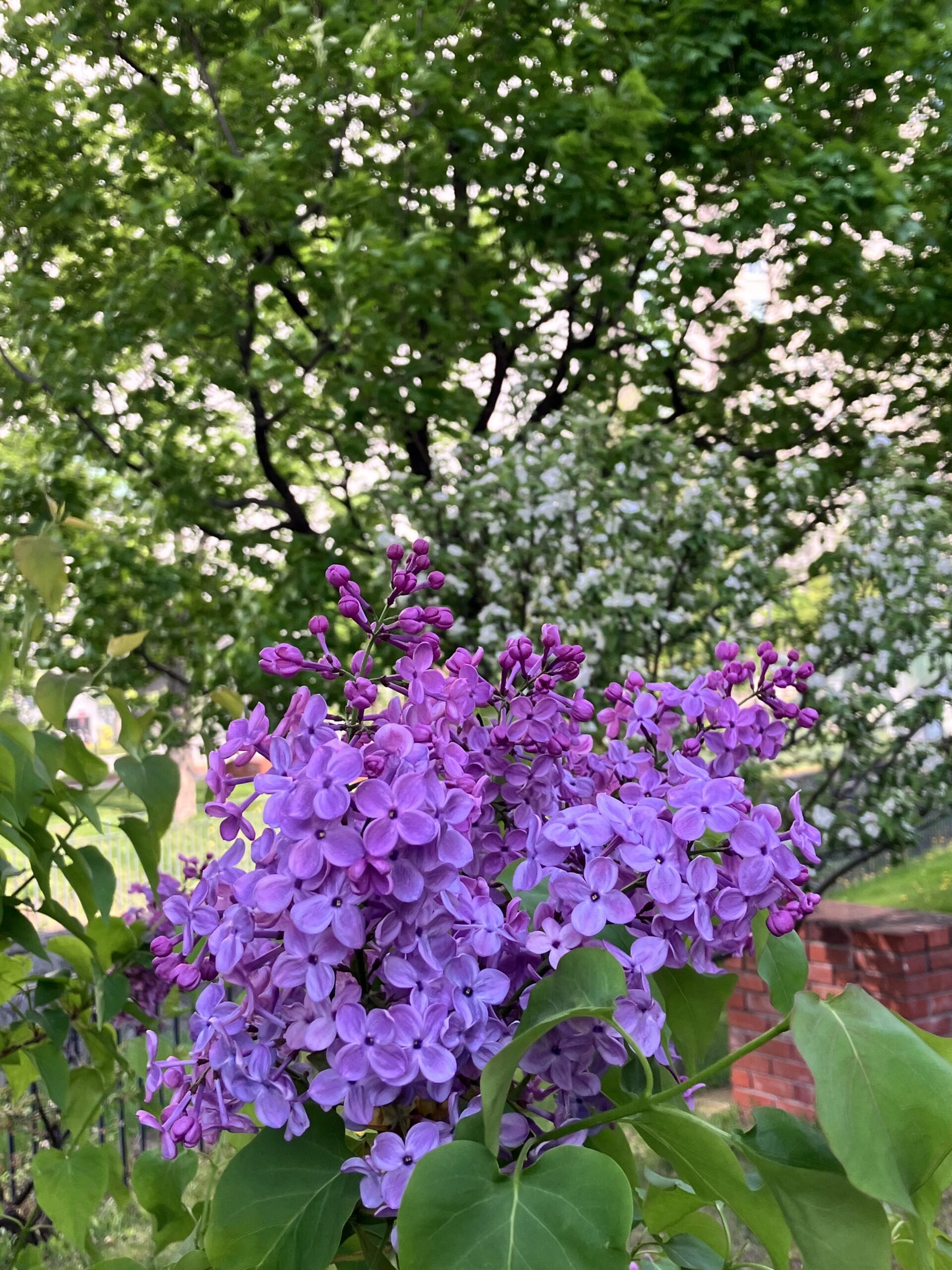 メッセージ:気が重い健康診断の朝にベンチに座って見たライラックに癒されました