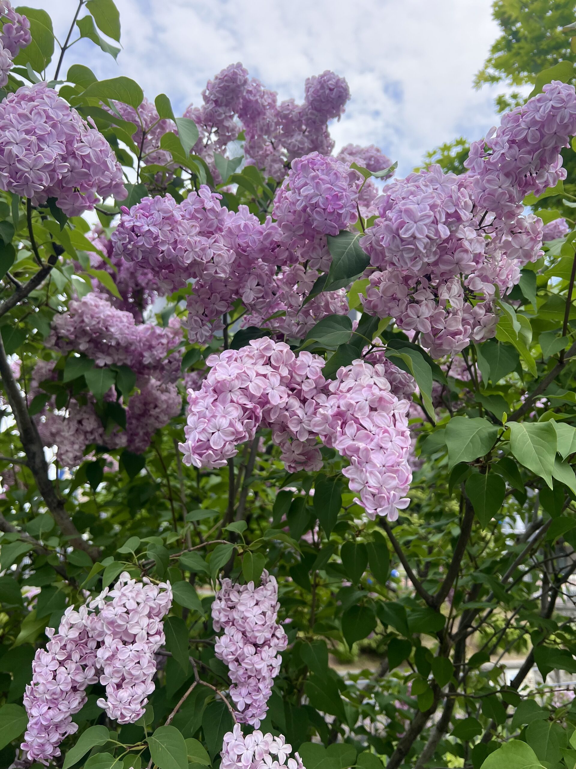 メッセージ:リラ冷えなのでしょう。なかなか青空に出会えませんでしたが 雲間が少し晴れたタイミングで爽やかなライラックを撮る事ができました!多分品種はエスタースティリー。場所は大通り西1。