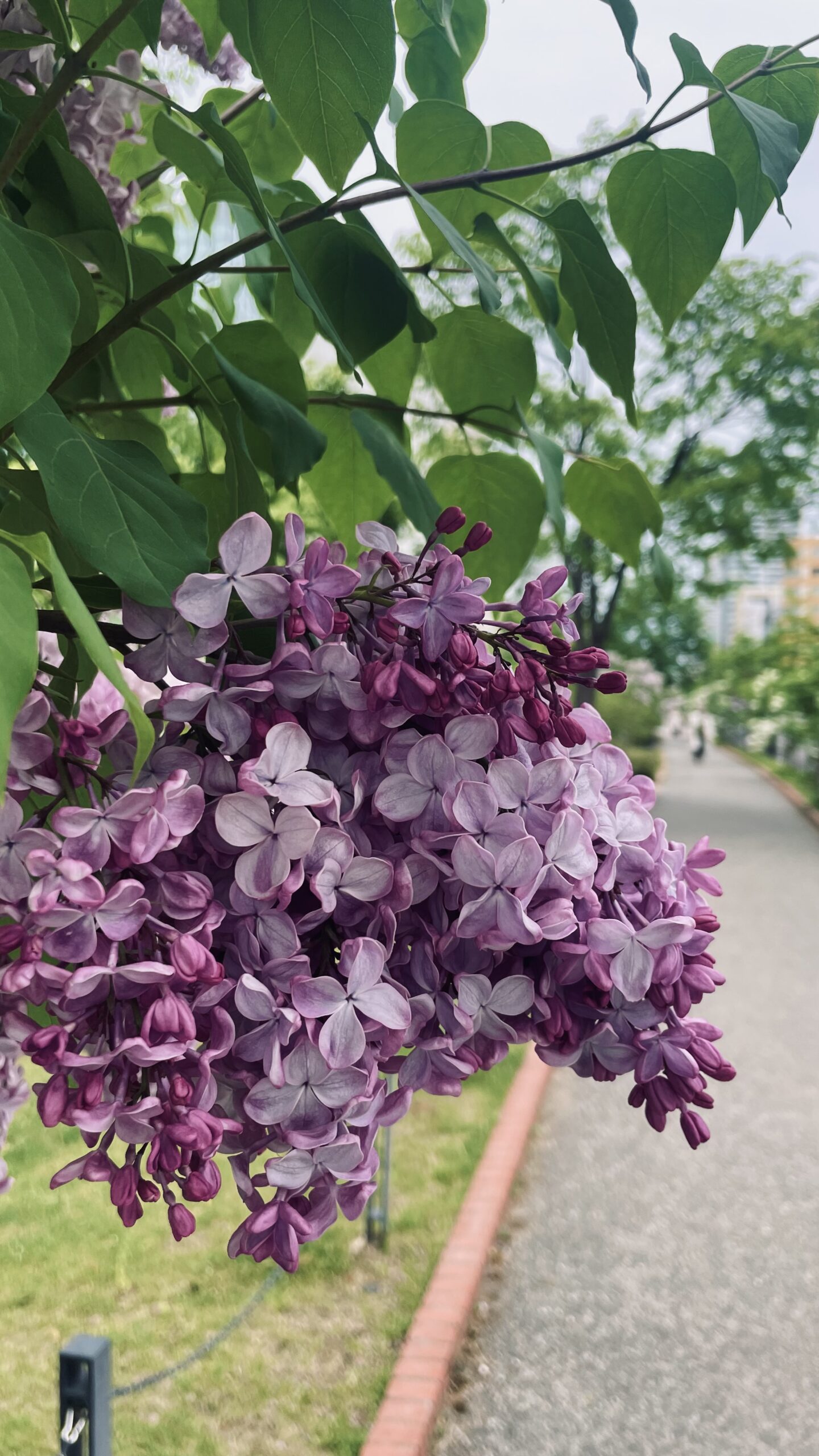 メッセージ:気品のある紫のライラックが創生通りの遊歩道を華やかに彩っています。