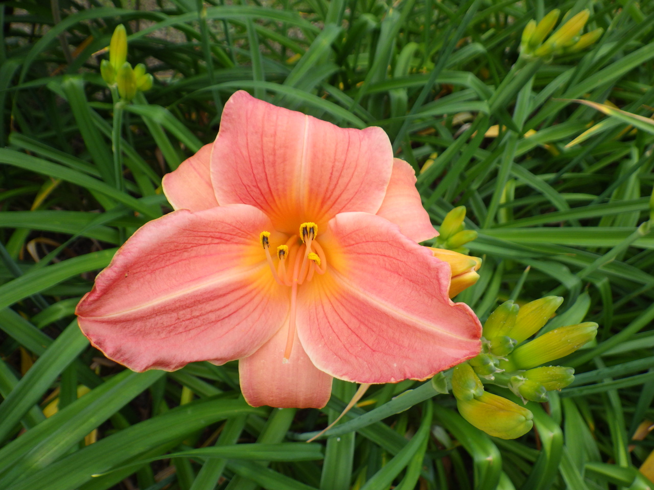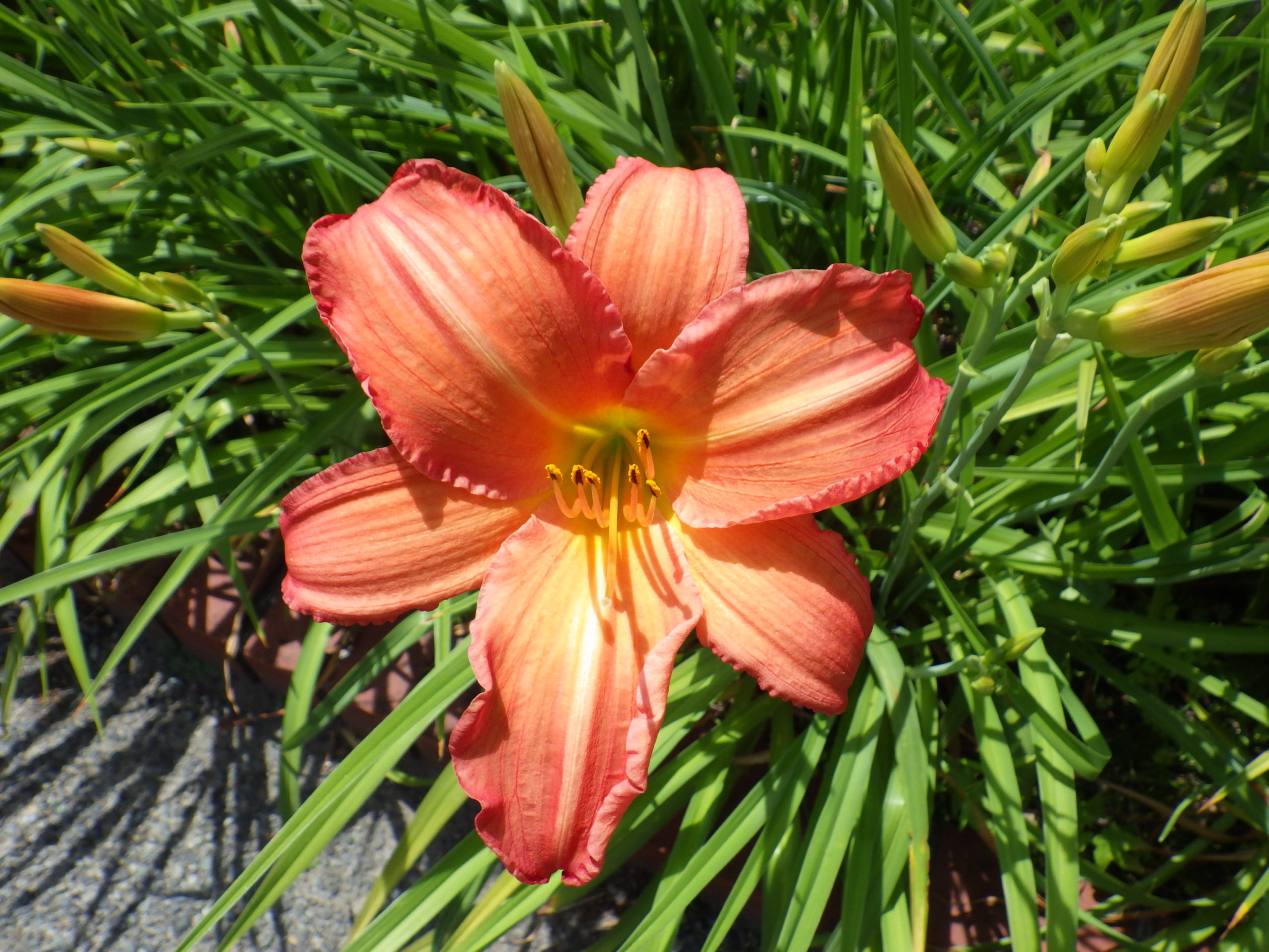 ヘメロカリスとはギリシャ語で「一日の美」という意味で、デイリリーとも呼ばれるユリ科の一日花です。一つの花は朝開いて夕方から夜にはしぼんでしまいますが、1本の花茎から約10~30コのつぼみをつけ、一斉には咲かず次々と順を追って咲き長く楽しめます。