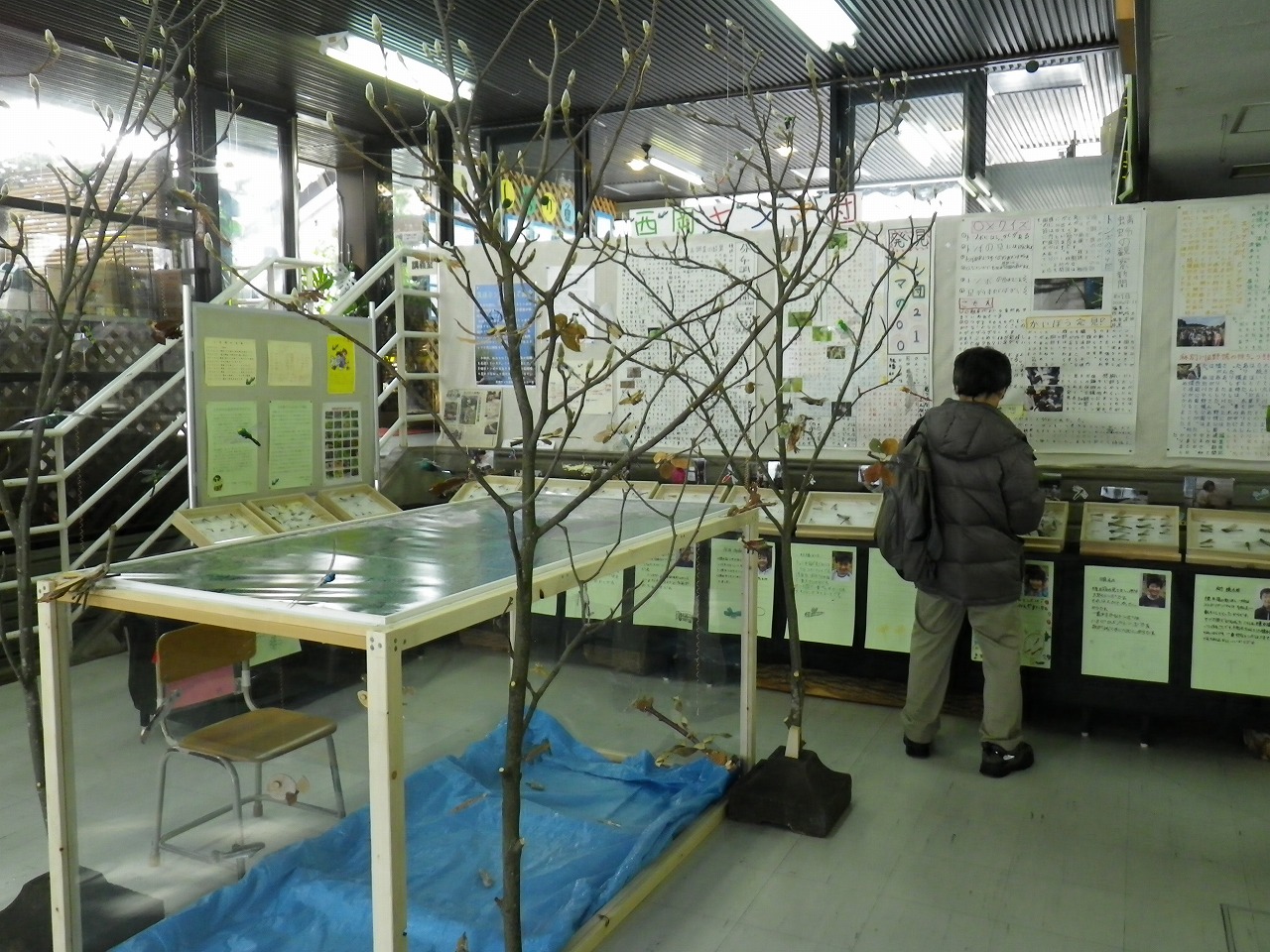 このほか、子供たちが公園の木等を使って作ったトンボや鳥、魚のオブジェや中学生スタッフの活動紹介、西岡公園で見られる植物の紹介と植物標本を展示しています。