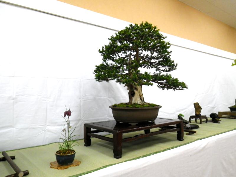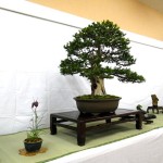 ←こちらはかなり大きな盆栽の一席。このイチイは幹の中心部が白骨化したシャリが入っています。樹齢は・・・100年くらいたっているそうですが、詳しい樹齢は会員さんでもわからないそうです。でも、持ち主の方はこの盆栽をいただいてから40年は経っているそうです。