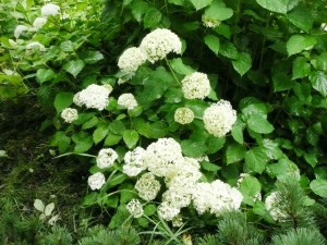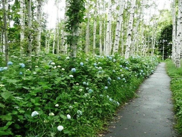 白樺林のアジサイが7~8分咲きといった感じになっています。