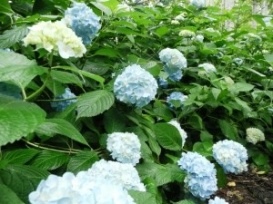 主に水色の西洋アジサイがもりもり咲いてきています。7月下旬に入れば満開と言ってよさそうです。