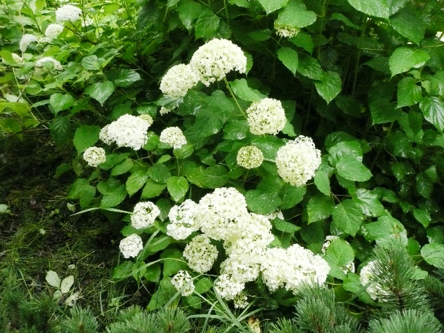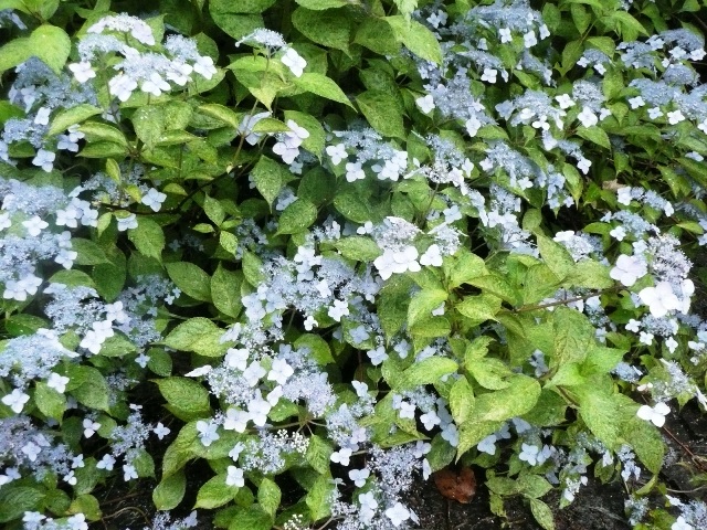 ガクアジサイ、ヤマアジサイなどの園芸品種が多く植わっているので、