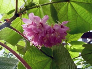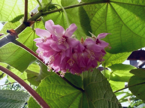 花は3~4cmの濃いピンクの小花が球状に集まって、